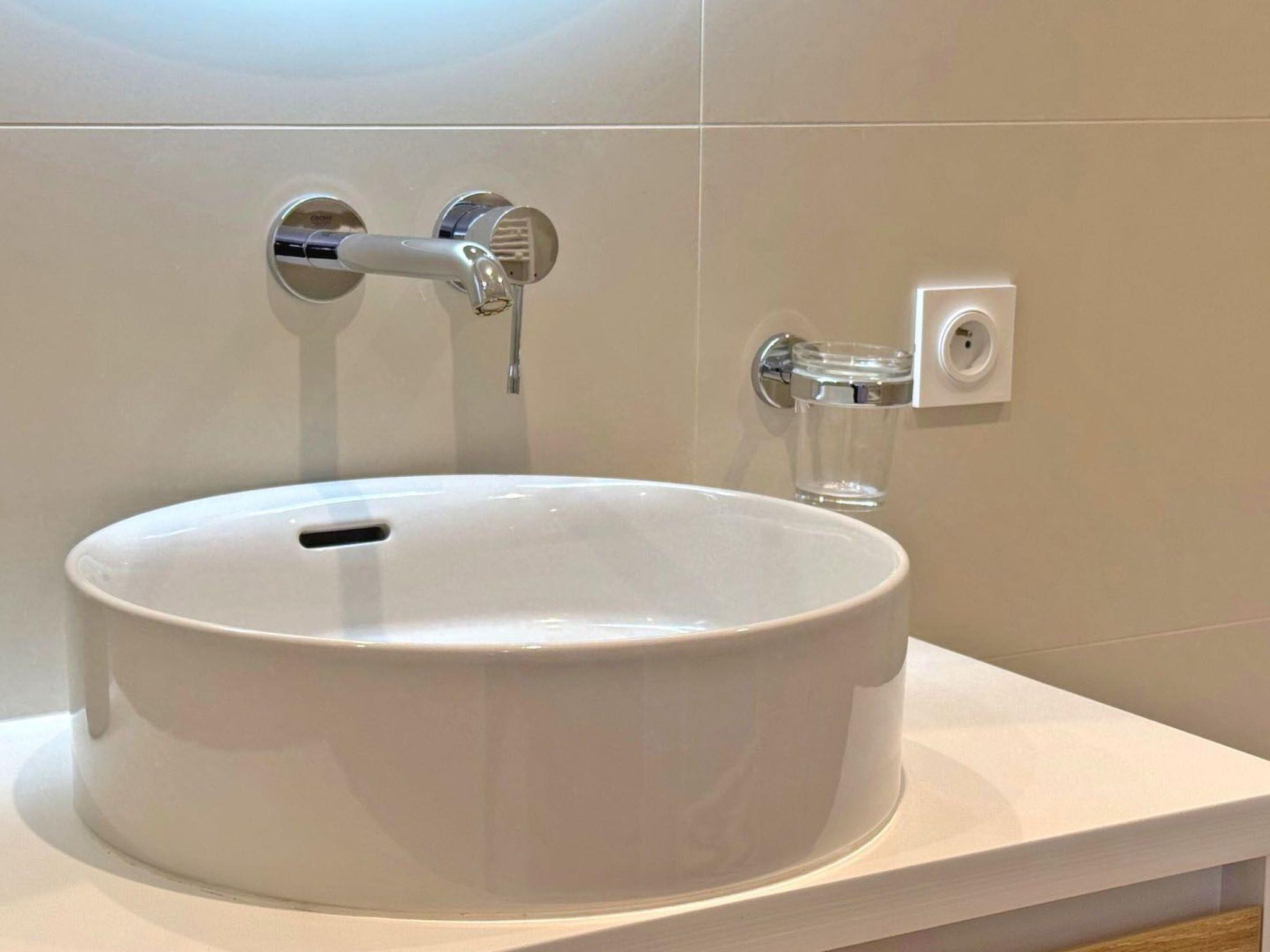 - Kitchen with American fridge, dishwasher, oven, microwave, Nespresso machine, induction hob, crockery and cutlery