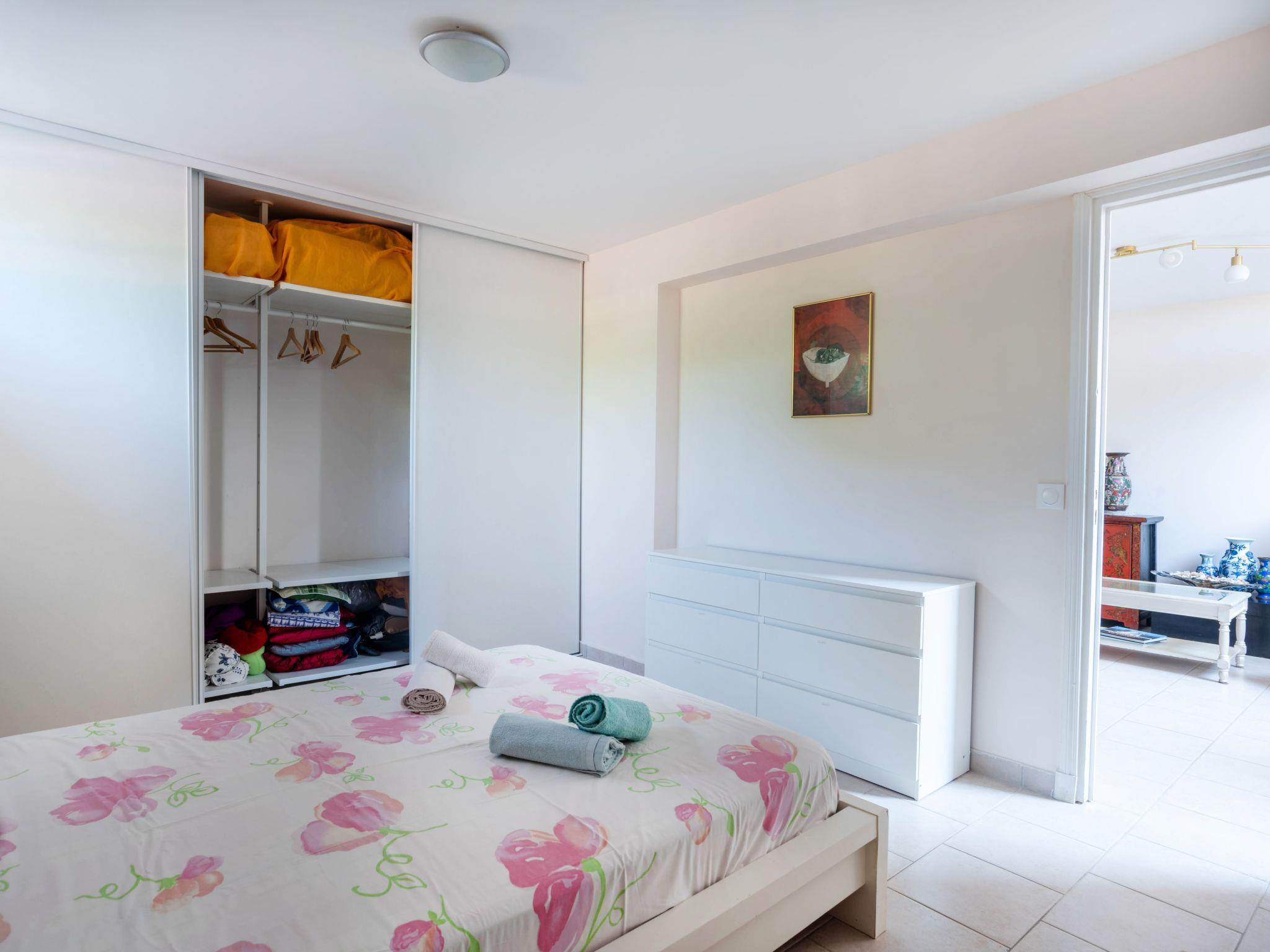 This charming villa for two to six people, with its private swimming pool in an enclosed flower garden, has a first bedroom adjoining the bathroom with a bathtub and shower cubicle, furnished with a washbasin and mirror. ATTENTION: we do not wish to rent the villa to families with small children who cannot swim! The second bedroom adjoins a large bathroom with bathtub and is furnished with two washbasins and two mirrors. The third bedroom adjoins the shower room and also has a vanity unit with washbasin and mirror. There are also three WCs, a lounge with a 46-inch Led flat-screen TV, a dining room, a separate kitchen equipped with induction cooker, oven, microwave, Senseo coffee machine in capsule, dishwasher; a laundry room with washing machine, internet connection.