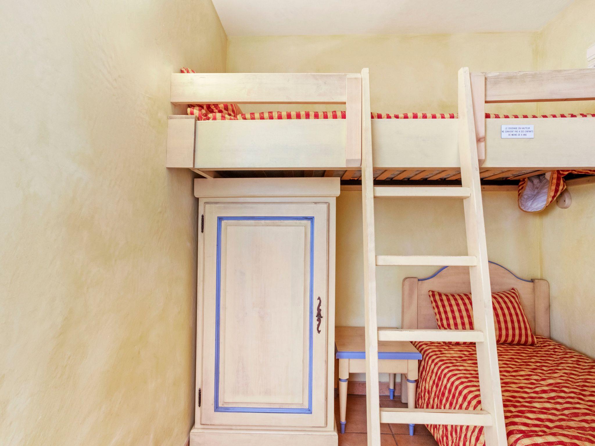Decorated in Provençal style, the 35 m² flat has three fully furnished and equipped rooms for up to 4 people. It has a kitchenette (ceramic hob, oven, dishwasher, microwave, toaster), a living/dining room, a television, free Wi-Fi via fibre optic, a cabin with two bunk beds for children, a bedroom with a 1.60 m-wide bed, a bathroom (bath, washbasin), separate WC and a large terrace with garden furniture, extending the living space. A number of features have recently been upgraded.