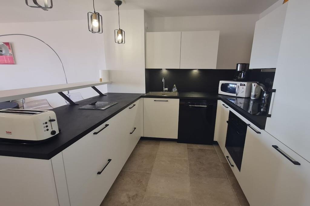 Feriehuset er på cirka 63 m² og har plads til 5-6 personer. Opholds- og spisestuen har spisebord, sovesofa og tv. Det fuldt udstyrede amerikanske køkken med komfur, ovn, opvaskemaskine og køleskab er perfekt til selvforplejning. Der er et soveværelse med dobbeltseng og adgang til terrassen og et soveværelse med to enkeltsenge. Lejligheden har også et badeværelse med badekar og separat toilet. Den fælles pool og tennisbane ligger i nærheden.
