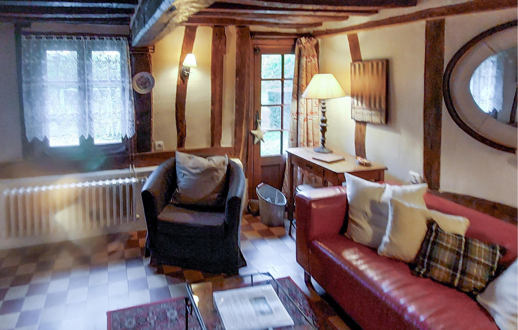 Velkommen til dette traditionelle normanniske stråtækte sommerhus fra 1800-tallet, der byder jer velkommen med rustik hygge og tilbyder jer et komfortabelt hjem, mens I udforsker Normandiets skatte. Lad jer fortrylle af de enkle, men varme møbler, mens I tilbereder lækre måltider og nyder den autentiske atmosfære med et brætspil ved pejsen.