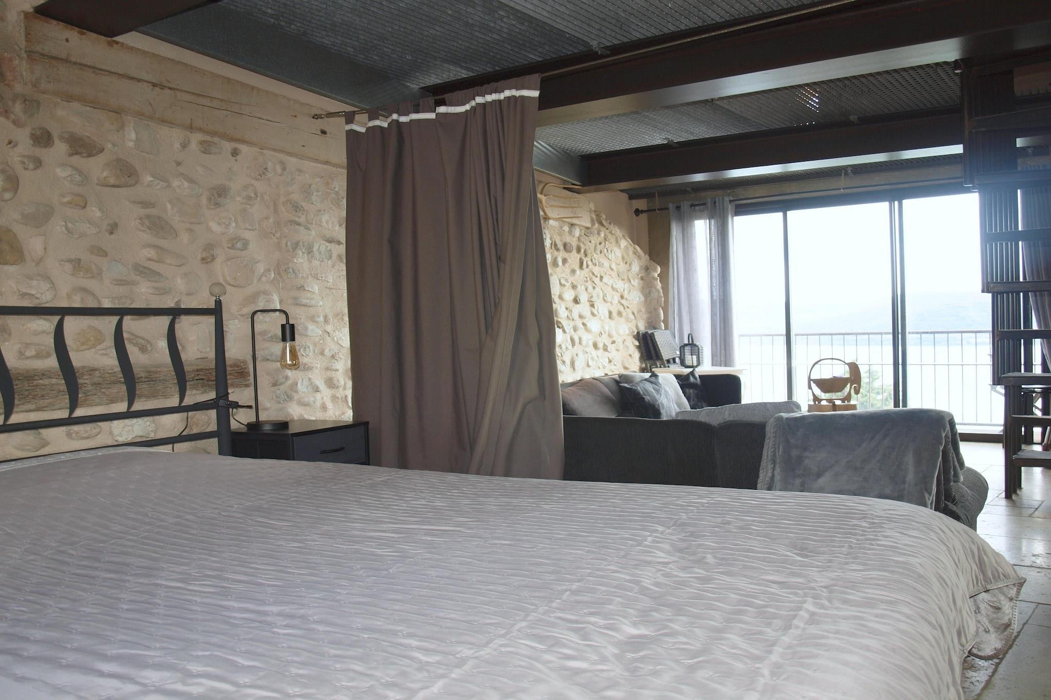 Den fantastiske udsigt over badesøen Sainte Croix og skovlandskabet overfor gør denne ferie uforglemmelig. Landsbyhuset, som er meget smagfuldt indrettet i industriel stil over tre etager, byder på masser af plads og muligheder for at alle kan trække sig tilbage. Den rummelige stue/spisestue under høje bjælkelofter og balkonen foran byder på en smuk panoramaudsigt. En stejl jerntrappe fører herfra til et hyggeligt galleri, der indbyder til at se tv og læse. Nyd middelhavsstemningen med en god flaske vin foran disse usædvanligt smukke omgivelser. Aktiviteter i nærheden: Udforsk området til fods på de mange vandrestier eller fra vandet. Sørg for at planlægge en tur til de smukke Gorges du Verdon, som er unikke i Europa. White water sport, klatring på klippevægge og drageflyvning er meget vigtigt her. Glem ikke at besøge Museum of Prehistory i Quinson og Museum of Archaeology i Riez Ikke egnet til personer med nedsat mobilitet