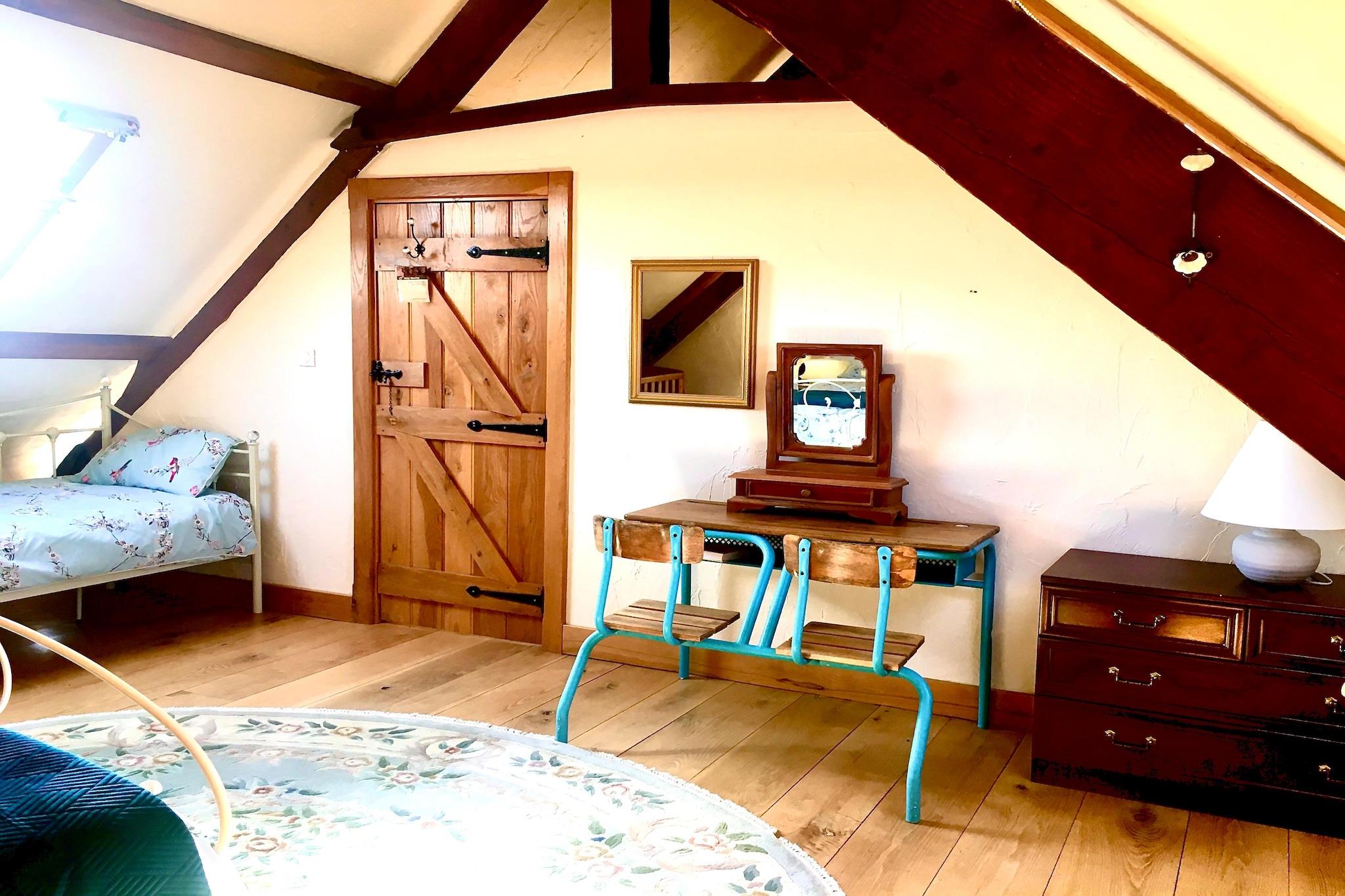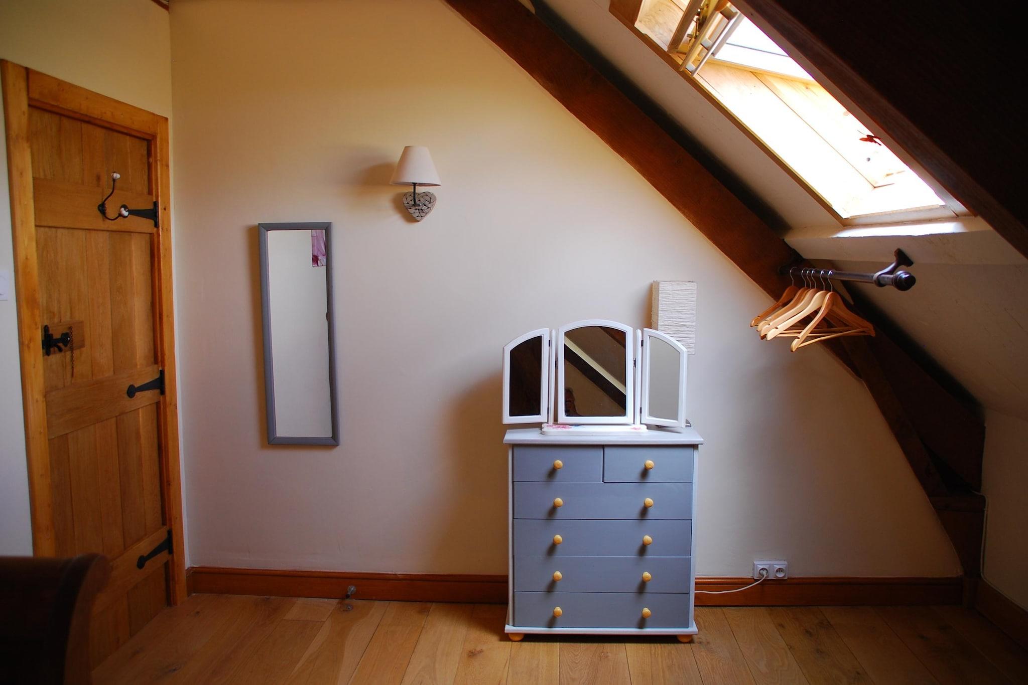 Denne charmerende stenbyggede gîte i Sainte-Marguerite-d'Elle tilbyder et varmt og rummeligt tilflugtssted for familier eller grupper. Fordelt på tre etager har det et stort køkken og spiseplads, en solbelyst stue, perfekt til at se spektakulære solnedgange, og tre hyggelige soveværelser, herunder et familieværelse med en kingsize seng, barneseng og enkeltseng. Den buede trappe tilføjer karakter, selvom den kan være udfordrende for mindre mobile gæster. Beliggende i en landsby på en bakketop med en flot udsigt over grønne dale, er beliggenheden ideel for naturelskere og historieentusiaster. Udforsk kirken fra det 11. århundrede, vandre eller cykle gennem naturskønne stier, og besøg det majestætiske Château de Balleroy i nærheden. Haven og terrassen er perfekte til at slappe af med en drink, mens solen går ned i gyldne nuancer på tværs af plænen. Gæster bydes personligt velkommen af kyndige værter, med opredte senge ved ankomsten og lokale tips altid tilgængelige. Nyd fredelige aftener med en grill i haven eller slap af i loungen badet i solnedgangslys. Denne gîte lover en mindeværdig flugt fra Normandiet fyldt med charme, komfort og landskabelig skønhed.