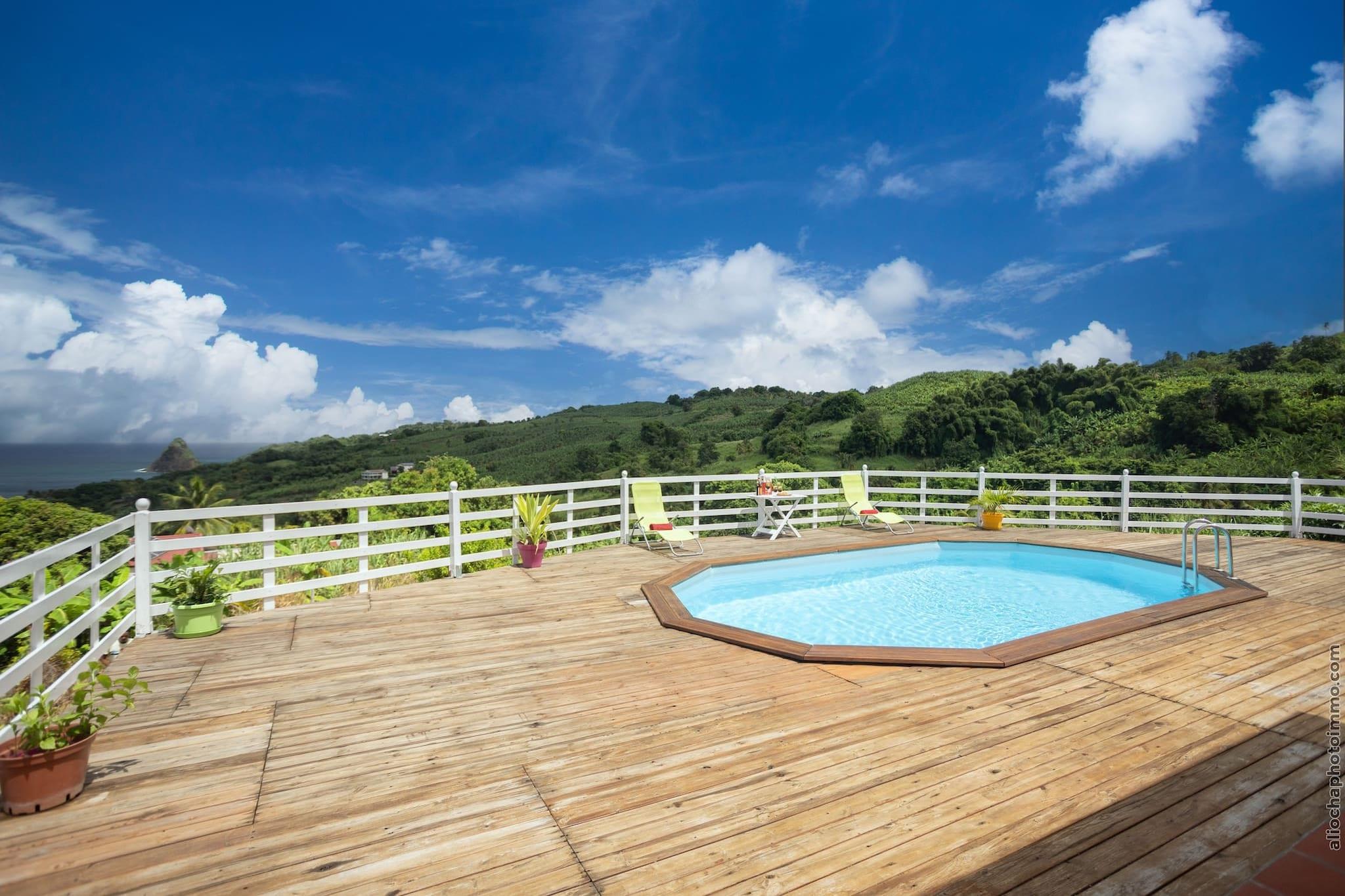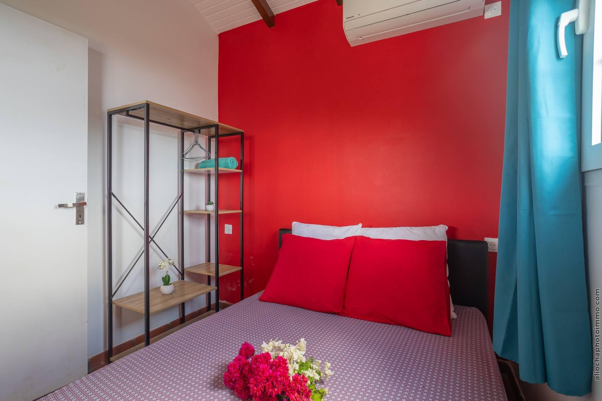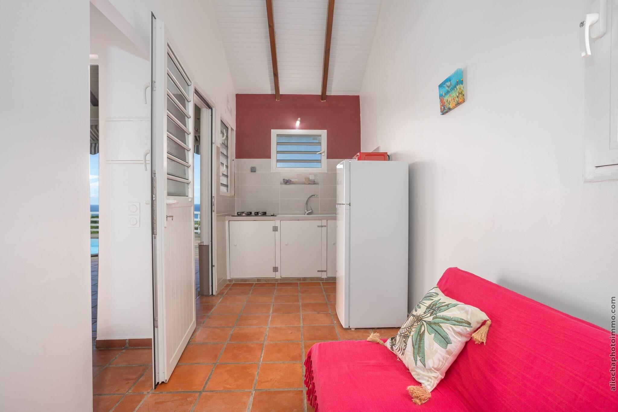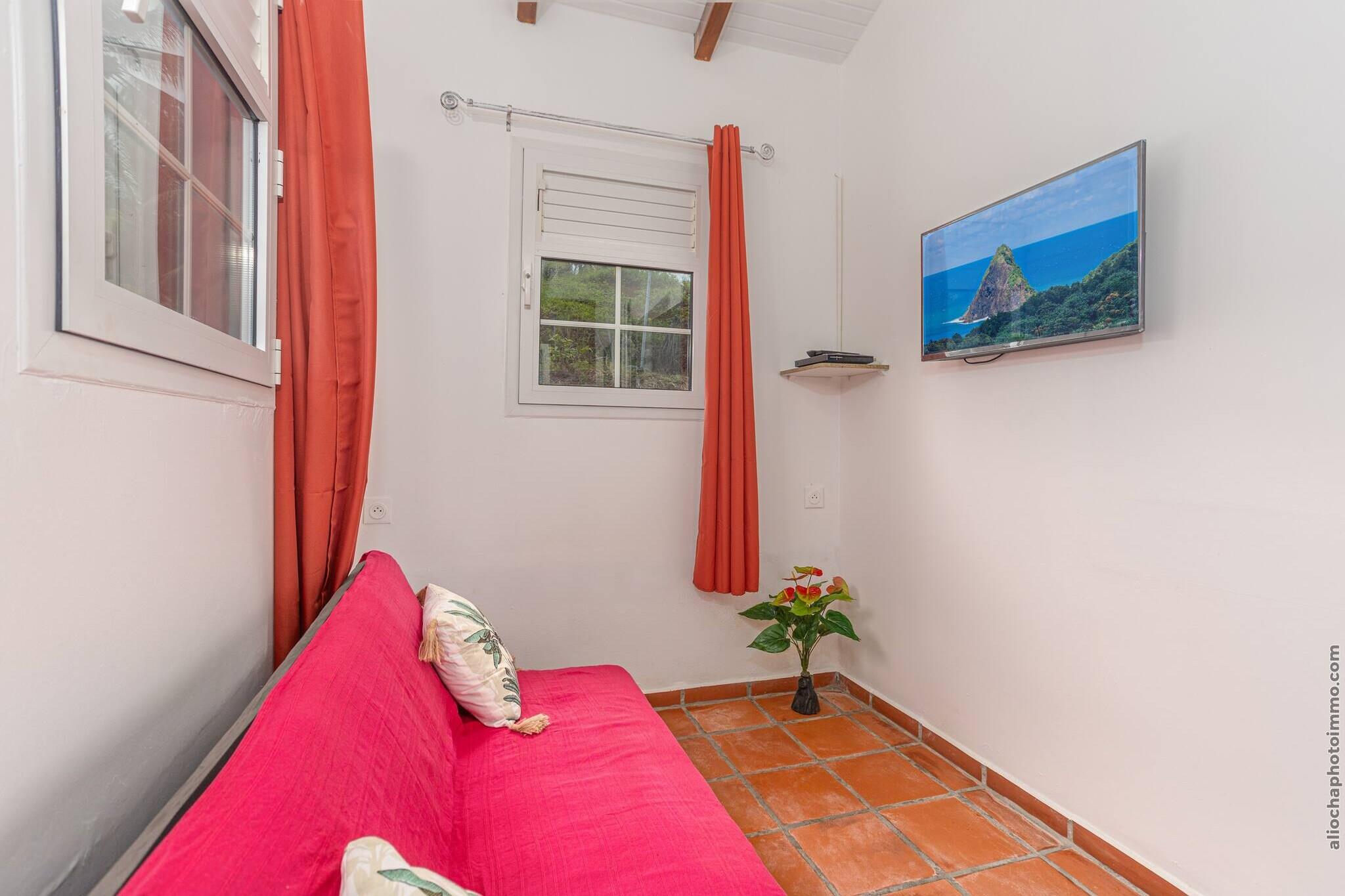 Oplev den fredfyldte charme i vores miljøansvarlige bungalows, omhyggeligt skabt af lokale landmænd til par, der søger afkobling og ro. Beliggende i hjertet af Martiniques frodige landskab, blander disse hyggelige retræter rustik charme med bæredygtig livsstil, udelukkende drevet af solenergi. Med panoramaudsigt over de bølgende bakker, det glitrende hav og den ikoniske Sukkertoppen, er dette en tilflugtssted med rødder i natur og autenticitet. Bare 5 minutter fra Anse Charpentier (ideel til surfere) og 15 minutter fra den svømmevenlige Plage des Raisiniers i Trinité, tilbyder beliggenheden adgang til øens kystskatte. I nærheden kan du nyde de lokale smagsoplevelser på restaurant Le Point de Vue, vandre gennem Philippe-skoven eller fordybe dig i det pulserende Sainte-Marie-marked. Udforsk kulturelle perler som Saint James Distillery, Tombolo-øerne og Habitation La Salle for en dybere forbindelse til Martiniques kulturarv. Hver bungalow har et soveværelse med dobbeltseng og en opholdsstue med en sovesofa, hvilket gør den ideel til et par eller en lille gruppe. Selvom privatliv og fred prioriteres, kan små arrangementer (maks. 16 personer) være tilladt efter forudgående aftale - ingen DJ's eller høj musik efter kl. 22.00. Gæster er velkomne til at medbringe op til 8 besøgende under deres ophold. Book nu og genoptag kontakten med naturen i denne fredelige oase i det nordlige Martinique.