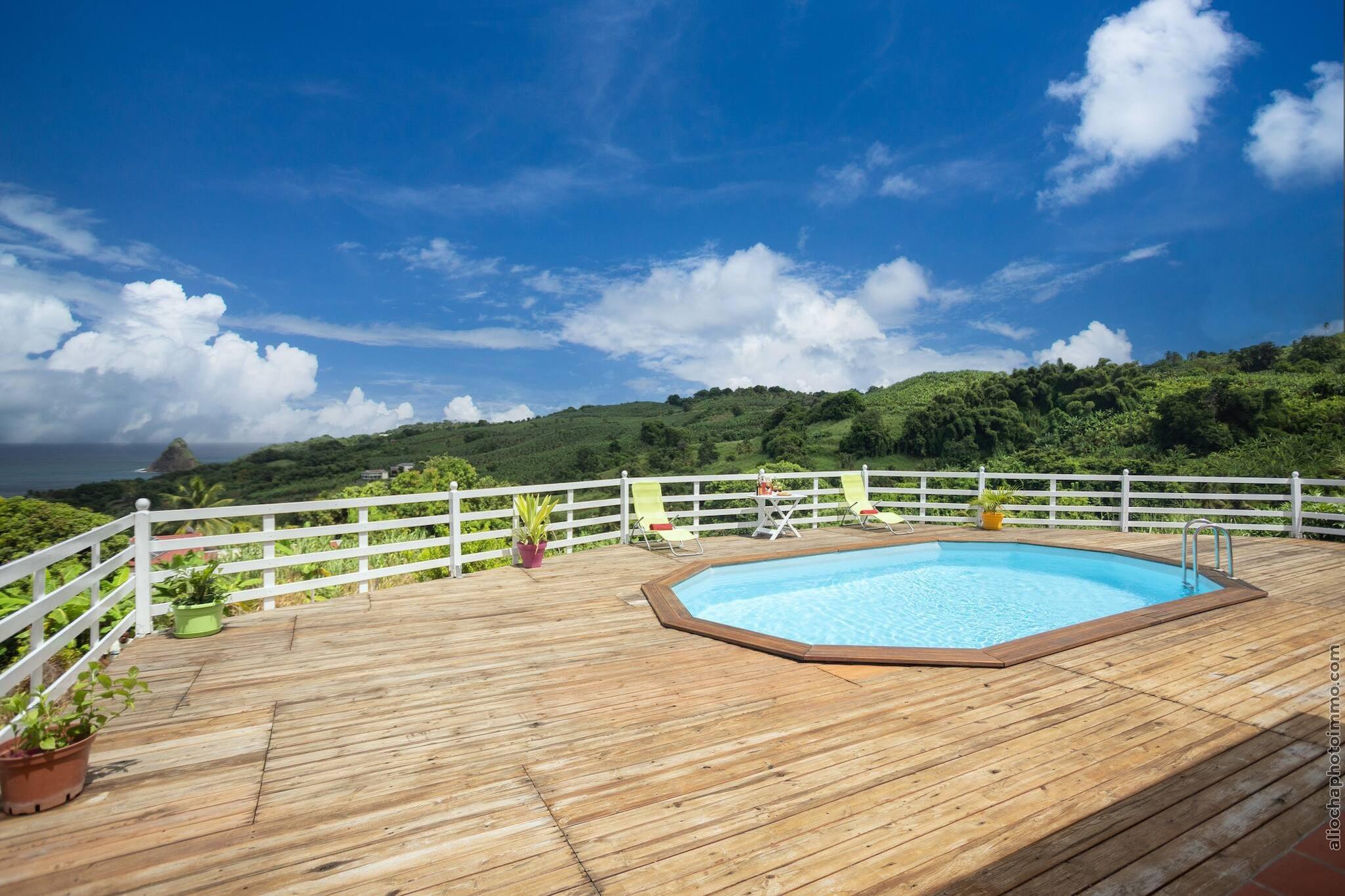 Genoplev naturen i vores charmerende, miljøvenlige bungalow, et fredeligt tilflugtssted skabt af dedikerede landmænd i hjertet af Martiniques landskab. Bungalowen er designet til par, der søger ro og afkobling, og tilbyder panoramaudsigt over frodige, grønne bakker, det glitrende hav og den ikoniske Sukkertoppen. Beliggende i rolige omgivelser er det den perfekte tilflugtssted for dem, der værdsætter enkelhed, natur og bæredygtig livsstil. Dette soldrevne gemmested har et hyggeligt soveværelse med en dobbeltseng og en komfortabel sovesofa i opholdsstuen. Gå udenfor for at nyde den private pool eller slap af på terrassen, mens du lytter til fuglesang og havbrise. Bare 5 minutters kørsel bringer dig til Anse Charpentier, en smuk surfstrand, mens den svømmevenlige Plage des Raisiniers kun ligger 15 minutter væk. Den nærliggende restaurant *Le Point de Vue* serverer lækre kreolske retter, og skovstier i Philippe-skoven tilbyder den perfekte naturvandring. Tilbring dine dage med at udforske øens rige kulturarv - besøg det livlige Sainte-Marie-marked om lørdagen, tag en tur på Saint James-destilleriet og de små Tombolo-øer, eller nyd en middag ved havet på North Beach Restaurant. Ideelt for par, der leder efter en autentisk oplevelse i et naturligt smukt og miljøbevidst miljø. Bemærk venligst: op til 4 besøgende er tilladt, men arrangementer eller larmende forsamlinger er ikke tilladt. Book nu og nyd Martinique, når det er mest roligt.