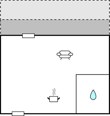 Opholdsstue 20m2 - 2 Sovepladser. (Dobbeltseng(e)).
