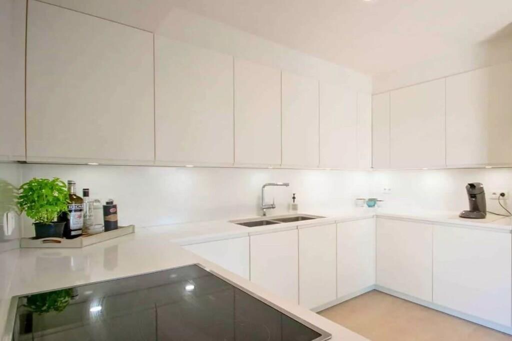 I stueetagen bydes I velkommen af en entré med garderobe og separat gæstetoilet. Den rummelige opholdsstue byder på spiseplads og siddeområde samt fladskærms-tv med satellitkanaler. Et nyt køkken udstyret med moderne apparater og alt nødvendigt køkkenudstyr giver direkte adgang til den store terrasse.