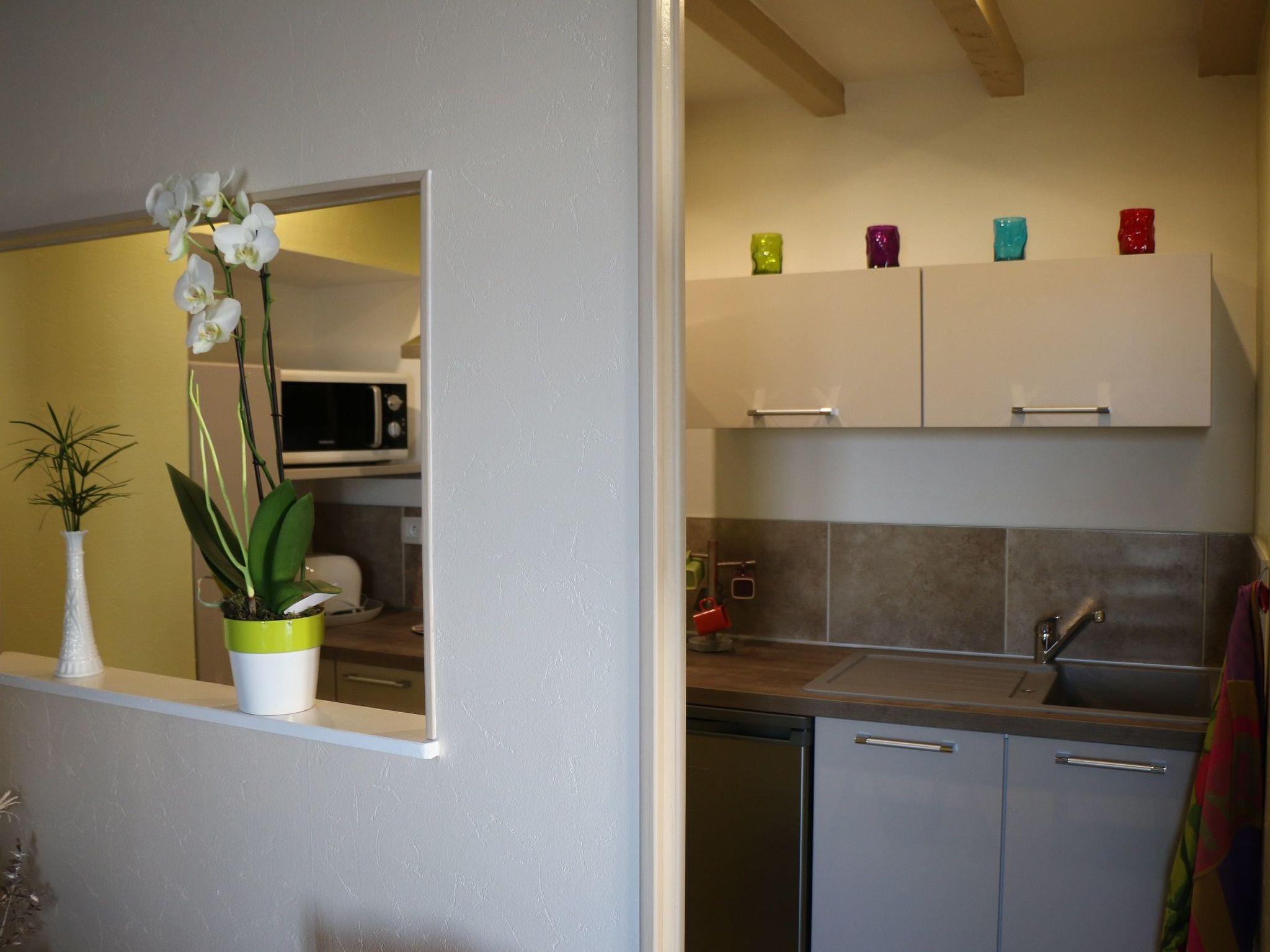 In the heart of the Cotentin marshes park, this charming studio has been completely renovated in an old barn, with care taken to preserve the spirit and materials of the period, and has been awarded 3-star furnished tourist accommodation status. This large ground-floor studio can accommodate up to 2 people, with a dining area and double bed. 32-inch television, WIFI. Fully-equipped kitchen (microwave, grill, fridge, coffee machine, toaster, crockery, etc.) Bathroom with large walk-in shower, washbasin and WC.