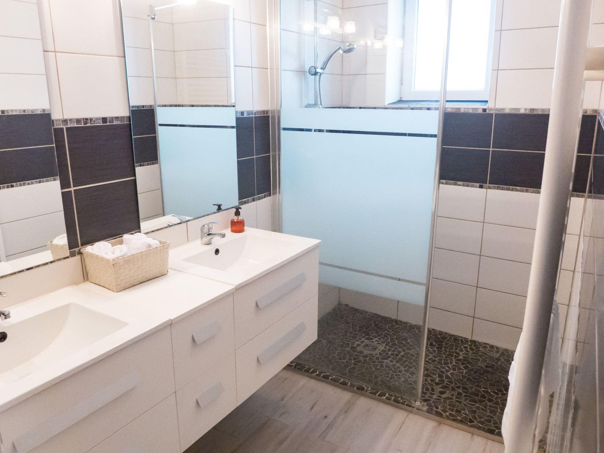 The house has a large room of over 60 m² with a lounge / dining area, a large and very well-equipped kitchen and an separate toilet. Upstairs, 2 double bedrooms, 1 double bedroom with dressing room, 1 twin bedroom, 2 shower rooms and 1 separate toilet.