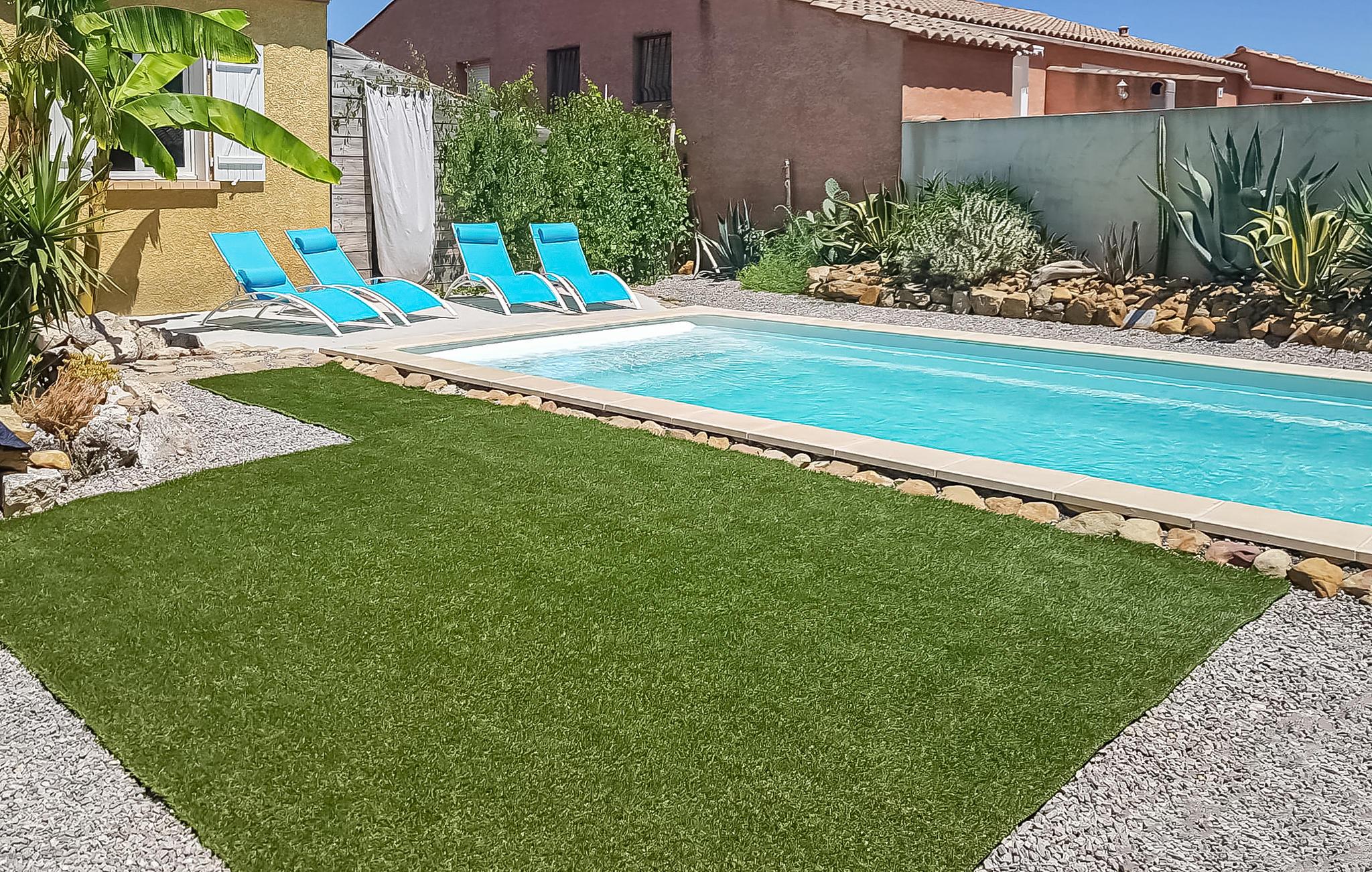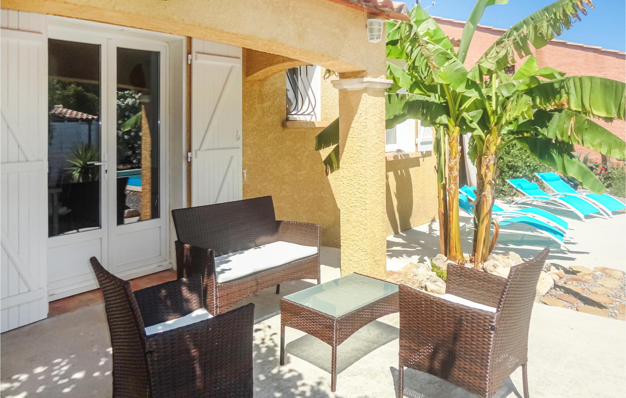 Skøn ferielejlighed i Salles d'Aude, i en rummelig og lys 1-plans villa med privat swimmingpool og rummelig, lukket ejendom uden naboer.