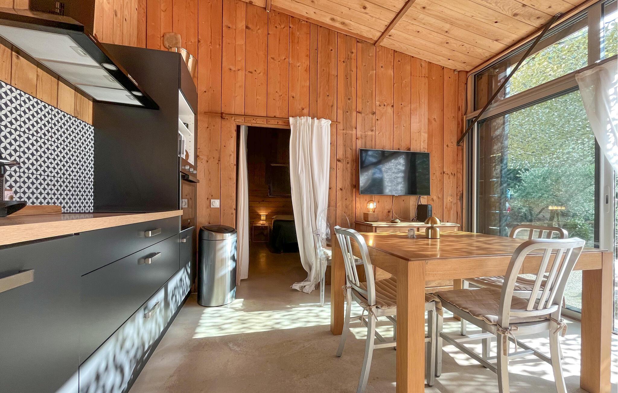 Dette fortryllende lille fristed har et komfortabelt og hyggeligt interiør, hvor I kan nyde fred og ro som par. Fremstil lækre retter i det moderne køkken, planlæg jeres aktiviteter over hyggelige måltider, og slap af efter en begivenhedsrig dag med et brætspil eller en god bog.