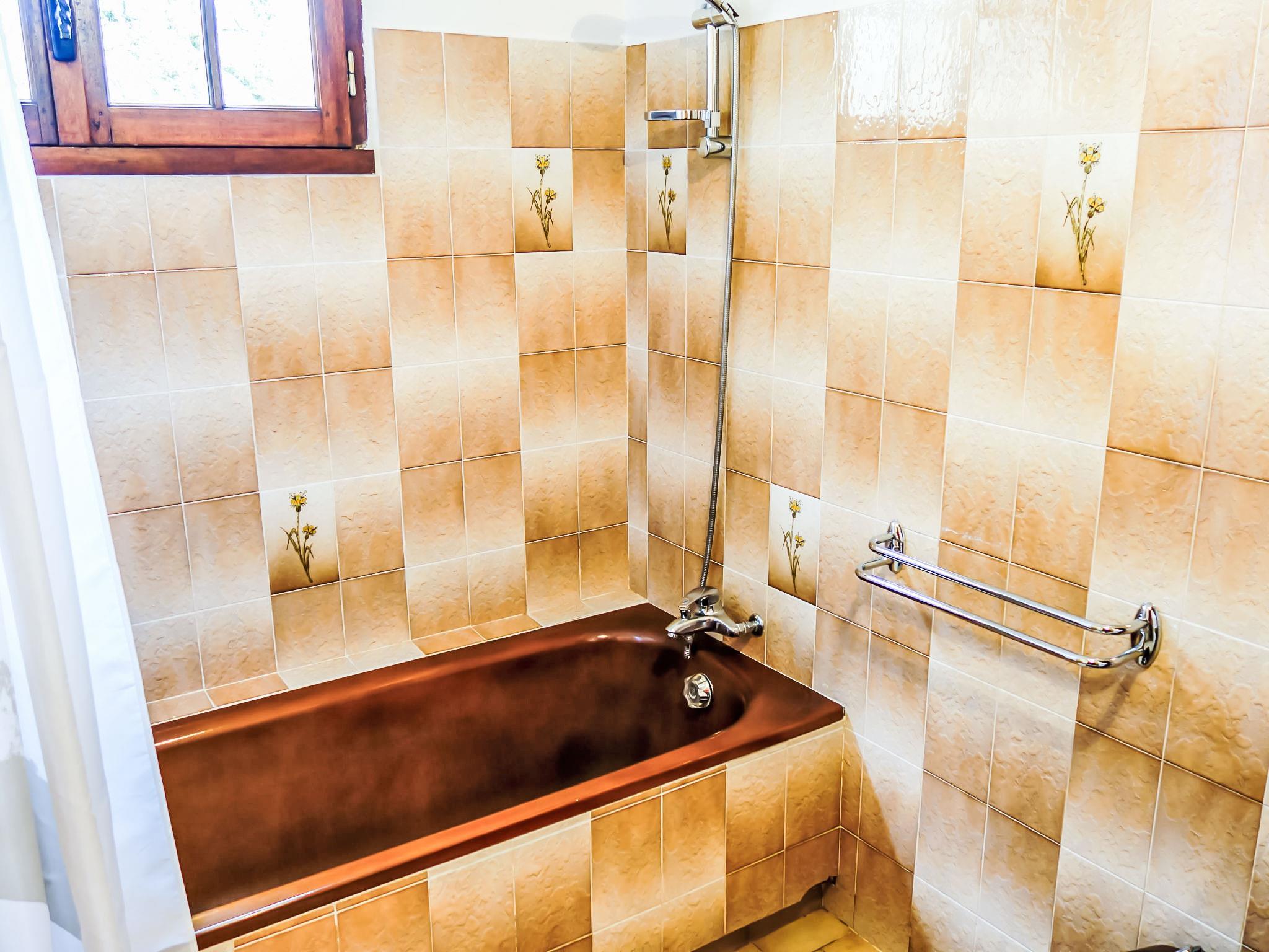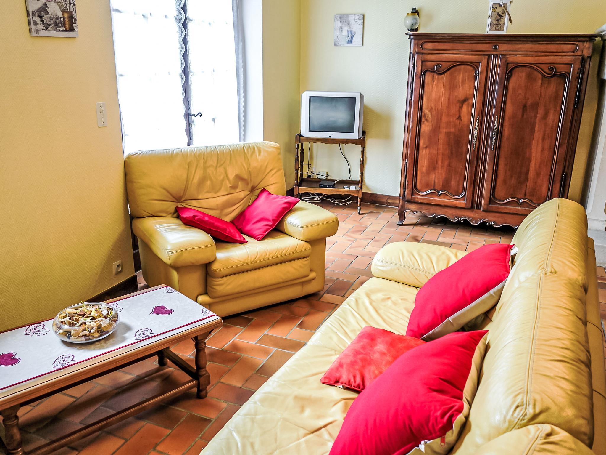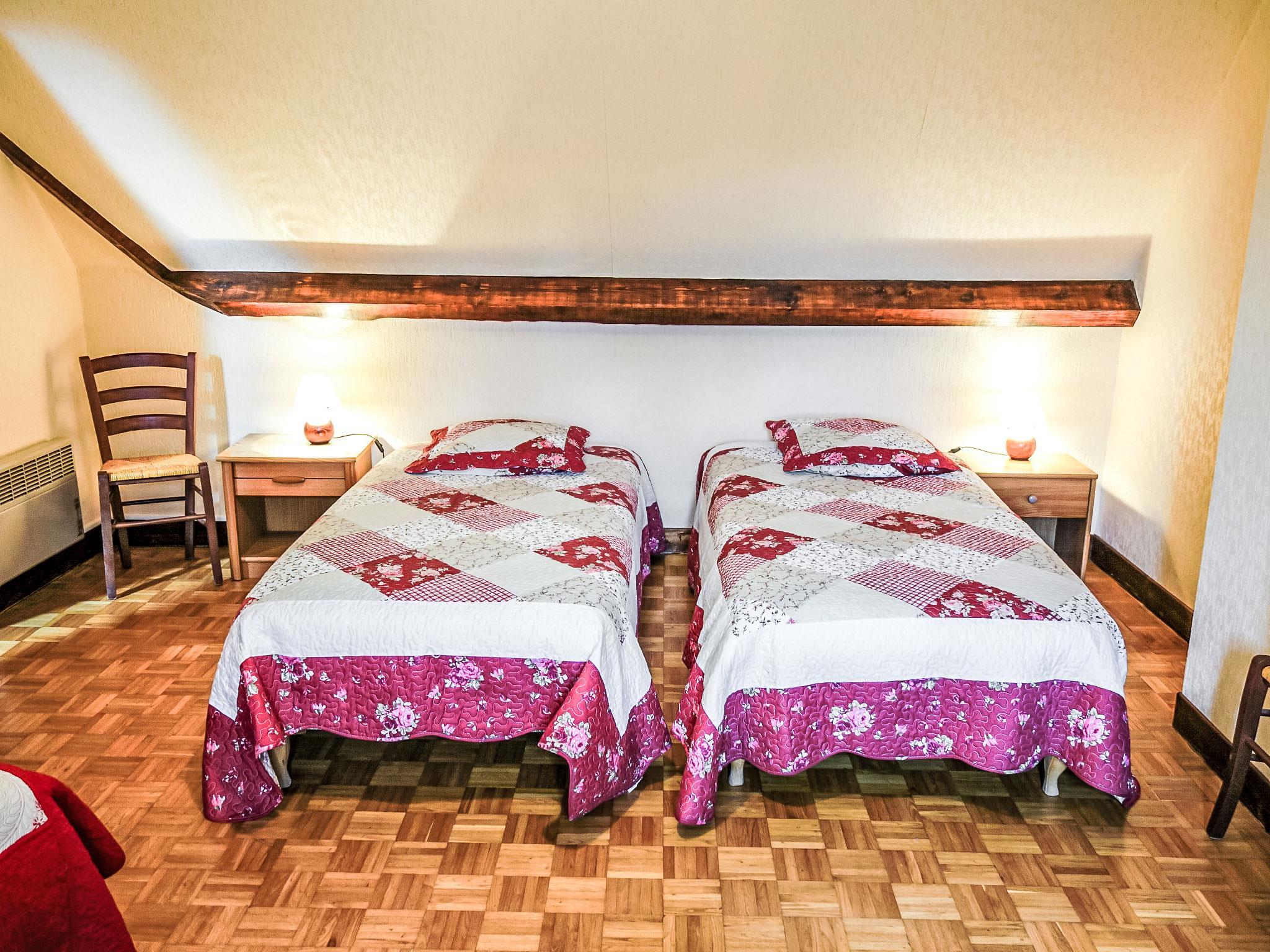 4-room house 122 m2 on 2 levels. Beautiful and rustic furnishings: living/dining room with open-hearth fireplace and satellite TV (flat screen). Exit to the garden. Kitchen (oven, dishwasher, 3 gas rings, toaster, kettle, microwave, freezer, electric coffee machine) with dining table. Bathroom, sep. WC. Upper floor: 2 rooms, each room with 1 french bed (140 cm, length 190 cm). 1 room with sloping ceilings with 3 beds (90 cm, length 190 cm). Sep. WC. Electric heating. Terrace 12 m2. Terrace furniture, barbecue (portable), deck chairs (6). Facilities: washing machine, iron, children's high chair, baby cot for up to 2 year olds, logs (free). Please note: suitable for families. Non-smoking house. Maximum 1 pet/ dog allowed. Smoke alarm.