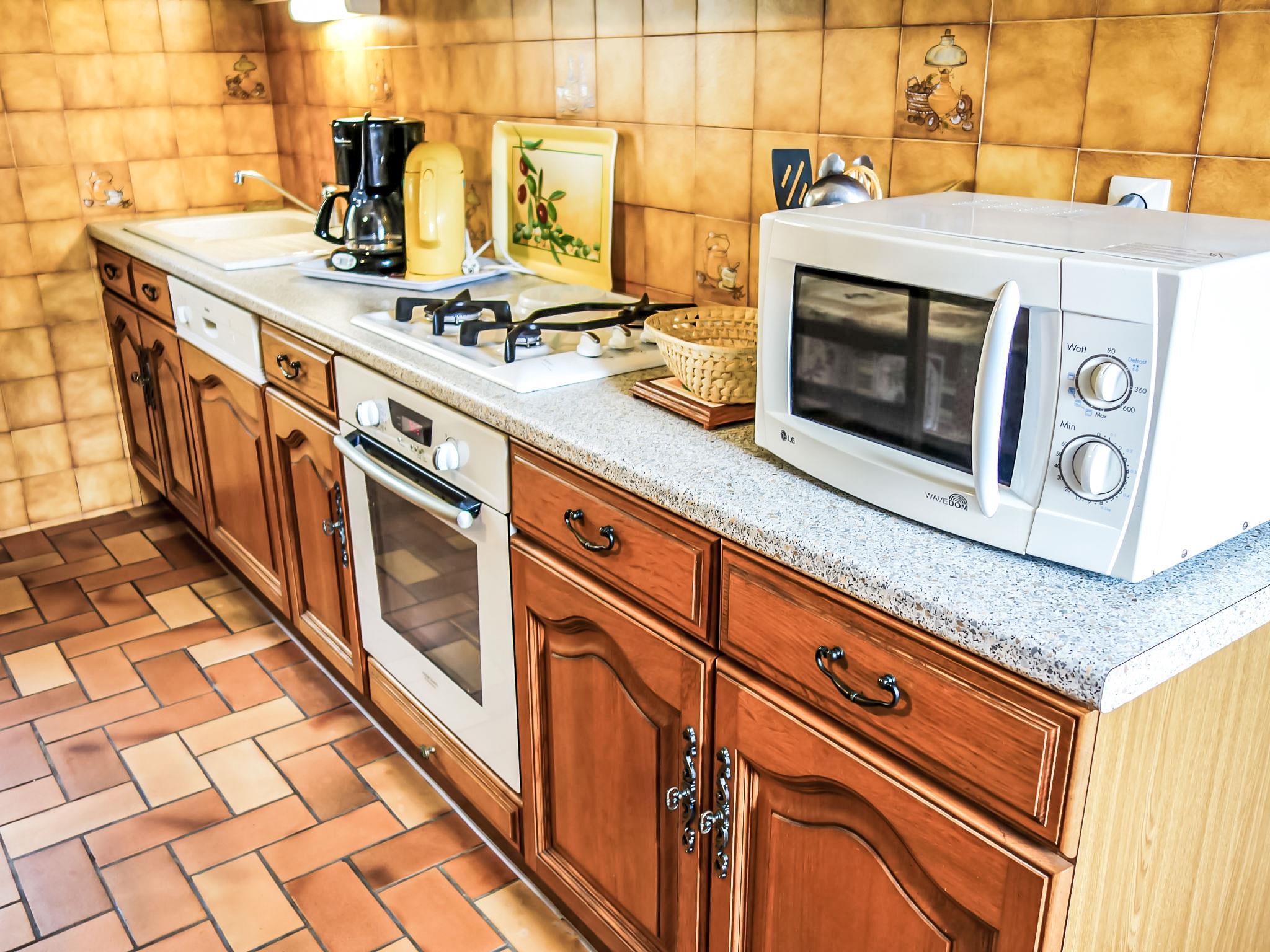 4 km from Salviac: Cosy, comfortable single-family house "Pech Gaillard", surrounded by trees. In a hamlet 4 km from the centre of Salviac, 17 km from the centre of Gourdon, 34 km from the centre of Cahors, in a quiet position, in the countryside. Private: large garden (not fenced) with lawn and trees, swimming pool fenced (14 x 7 m, depth 100 - 180 cm, seasonal availability: 15.May. - 31.Oct.) with alarm system. Parking at the house on the premises. Shop 4 km, grocery 4 km, supermarket 4 km, restaurant 10 km, bus stop "Dégagnac" 9 km. Tennis 4 km. Please note: car recommended.