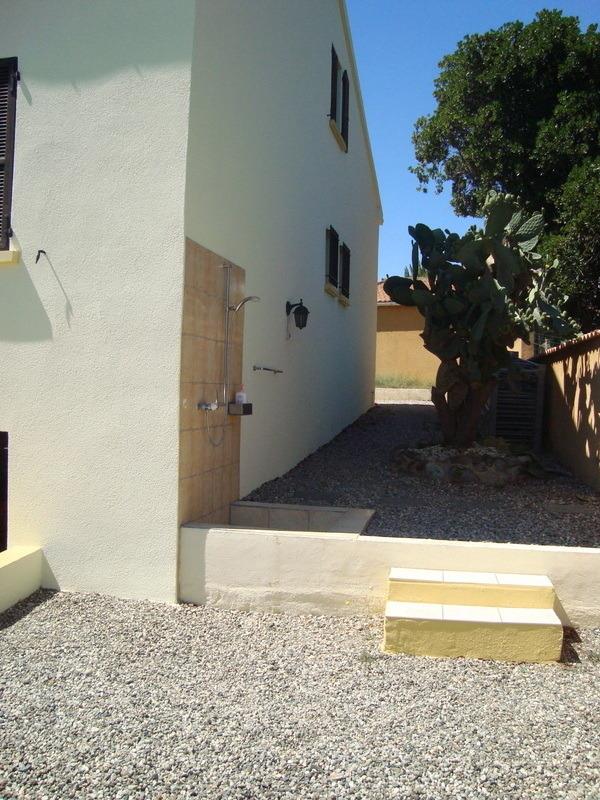 Die Aussendusche mit Meerblick und dem Klang der Zikaden ist ein Highlight. Entspannen in der
