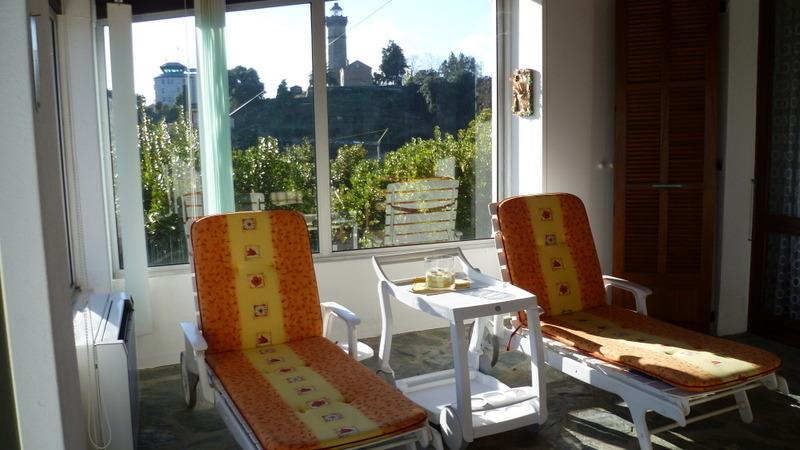 Hängematte im Garten und den wunderschönen Blick auf den Leuchtturm von Alistro ist Idyllisch.
