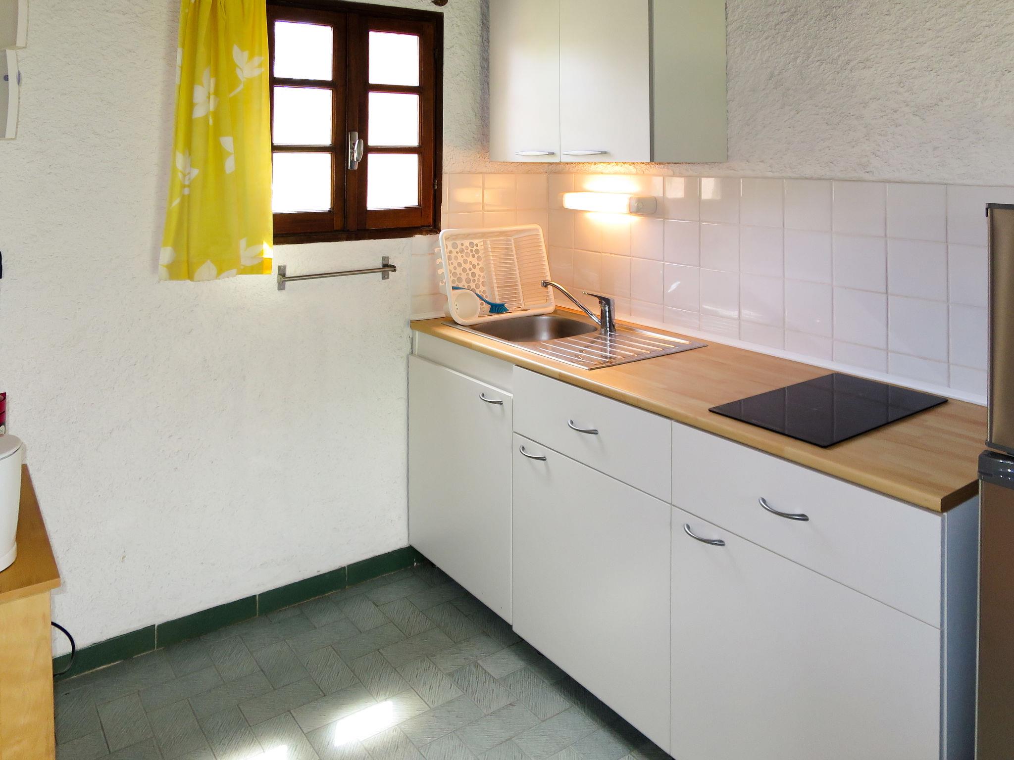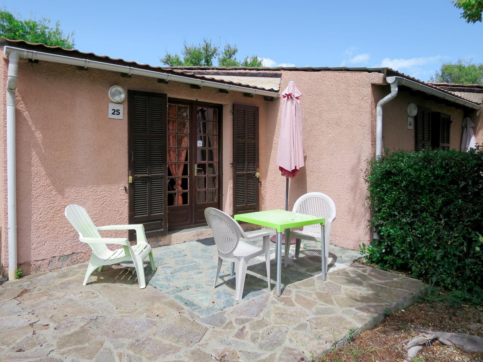 Child friendly, cosy, simple resort "Rico Plage", surrounded by fields. 60 houses in the residence. 6 km from the centre of Moriani Plage, 4 km from the centre of Folelli, 35 km from the centre of Bastia, in a quiet, sunny position, 50 m from the sea, 50 m from the beach, direct access to the beach, in the countryside. For shared use: large, beautiful garden with plants and trees, meadow. Tennis (2 x hard court), table tennis, boccia, volleyball court (swing). In the complex: reception with TV, internet access, WiFi. Bread roll service. Parking on the premises. E-charging station. Supermarket 4 km, restaurant 50 m, bus stop 4 km, sandy beach 50 m. Please note: car recommended. The photograph shows a typical example. The complex has another 10 chalets for rent.