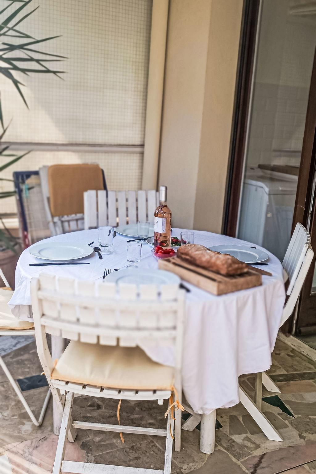 3-room apartment 67 m2 on 1st floor. Comfortable and beautiful furnishings: living/dining room with 1 double sofabed (140 cm, length 200 cm), TV. Exit to the terrace. 1 room with 2 beds (90 cm, length 190 cm). Exit to the terrace. 1 room with 2 beds (90 cm, length 190 cm). Exit to the terrace. Open kitchen (oven, dishwasher, 3 induction hot plates, toaster, kettle, microwave, freezer, electric coffee machine). Exit to the terrace. Shower, sep. WC. Electric heating. Heating available only from 15.10. to 25.03. Terrace 12 m2, roofed, south facing position. Terrace furniture. View of the garden. Facilities: washing machine. Internet (WiFi, free). Parking. Please note: TV only FR. Smoke alarm. 831230002905E