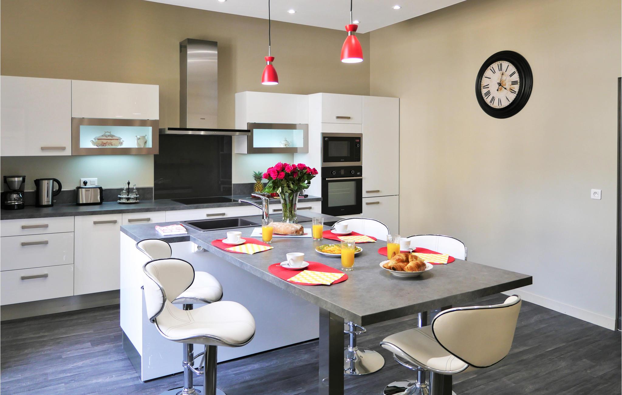 Velkommen til de lyse rum i denne lejlighed, der har en super god placering i hjertet af den gamle bydel i Sarlat, i en bygning fra det 18. århundrede. Med sin smagfulde indretning og moderne udstyr inviterers I til at slappe af i en stilfuld atmosfære. Efter en begivenhedsrig dag kan I føle jer godt tilpas i de komfortable sofaer og lænestole i stuen og snakke til langt ud på aftenen.