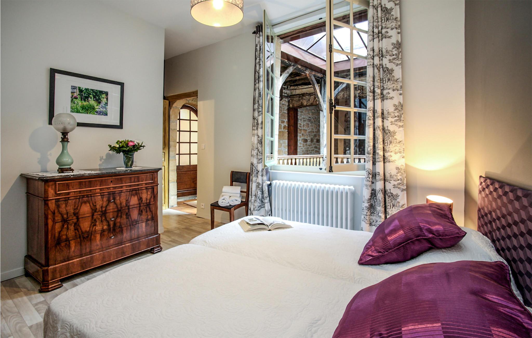 Velkommen til de lyse rum i denne lejlighed, godt placeret i hjertet af den gamle bydel i Sarlat, i en bygning fra det 18. århundrede. Med sin smagfulde indretning, smukke gulvbrædder og moderne udstyr inviterer den til at slappe af i en stilfuld atmosfære. Efter en begivenhedsrig dag kan I føle jer godt tilpas i de komfortable sofaer og lænestole i stuen og snakke til langt ud på aftenen. x