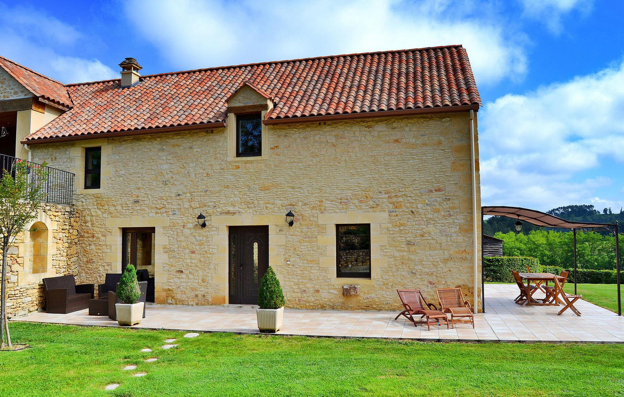 Ferielejligheden ligger i en landsby, hvor der bor tre familier året rundt og de tre ferielejligheder har en kapacitet på henholdsvis seks, seks og fire personer. De nærmeste butikker er i Sarlat, godt seks kilometer væk.