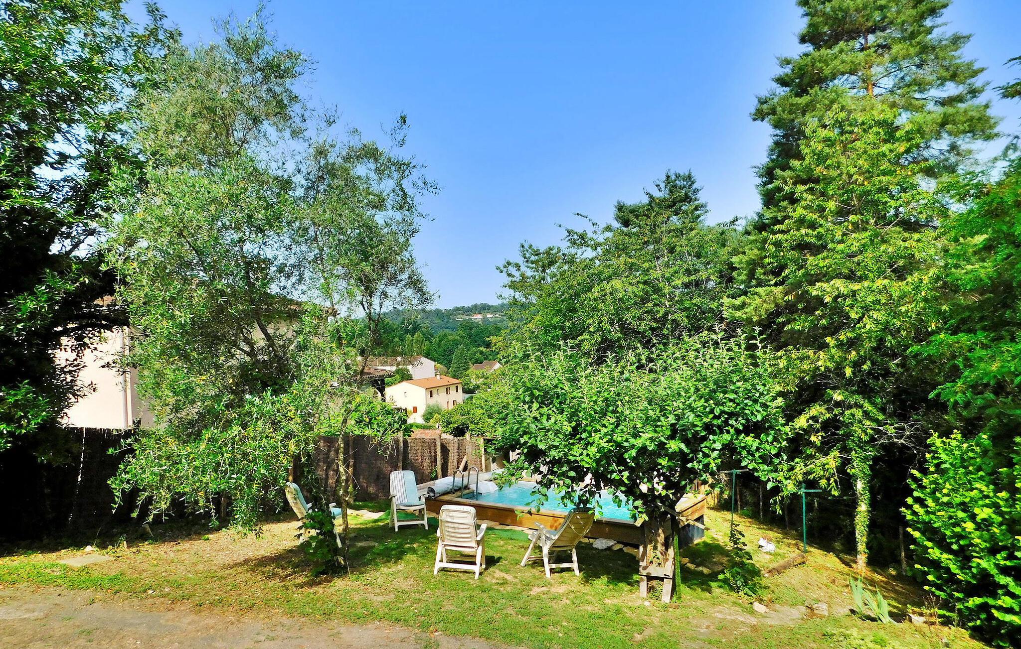 Ferieboligen i Sarlat, Dordogne er bekvemt placeret omkring 1,2 km fra byens centrum i et roligt beboelsesområde og tilbyder rigelige faciliteter til et behageligt ophold. Ejendommen kan prale af flere opholdsrum såsom spisestuer, en stue med sofa og tv og to spillelokaler med forskellige underholdningsmuligheder. Det uafhængige køkken er veludstyret og har adgang til terrassen. På vej ovenpå finder du de komfortable soveværelser, nogle med eget badeværelse. Udenfor er der et bordtennisbord, flere terrasser, græsplæneområder med udendørsmøbler og liggestole og en lille overjordisk opvarmet pool, sikret med et overtræk.