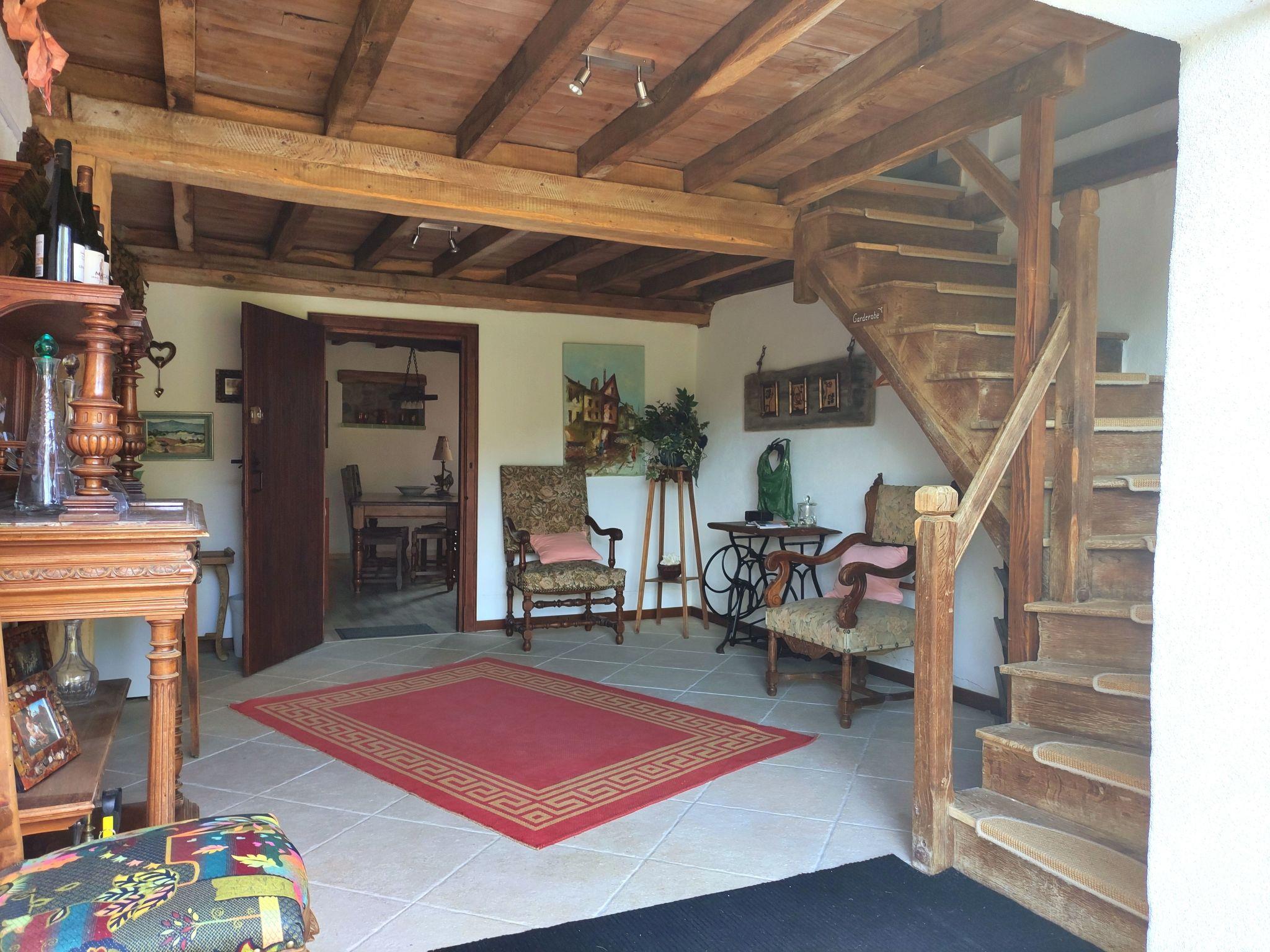 Your cosy guest area is located in the traditional farmhouse. On the ground floor is the entrance hall and the fully equipped kitchen with dining area for six people. The kitchen is also stocked with spices. On the first floor you will find a 50m² lounge with a sofa, seating areas and a view of the garden. Each of the three bedrooms also has a seating area with a table and a view of the Pyrenees as well as its own en suite bathroom. You can choose between two rooms with a double bed (1.80 m) or a twin room. Shower articles are available for you in the bathroom. There are separate lockers for suitcases, hiking gear, motorbike gear etc. A drying room is also available. The building has been lovingly restored. Its peaceful atmosphere will ensure your relaxation. Enjoy the view of the mountains and hills of the High Pyrenees. A small library is at your disposal. WLAN is of course free of charge. The rooms are cleaned daily.
