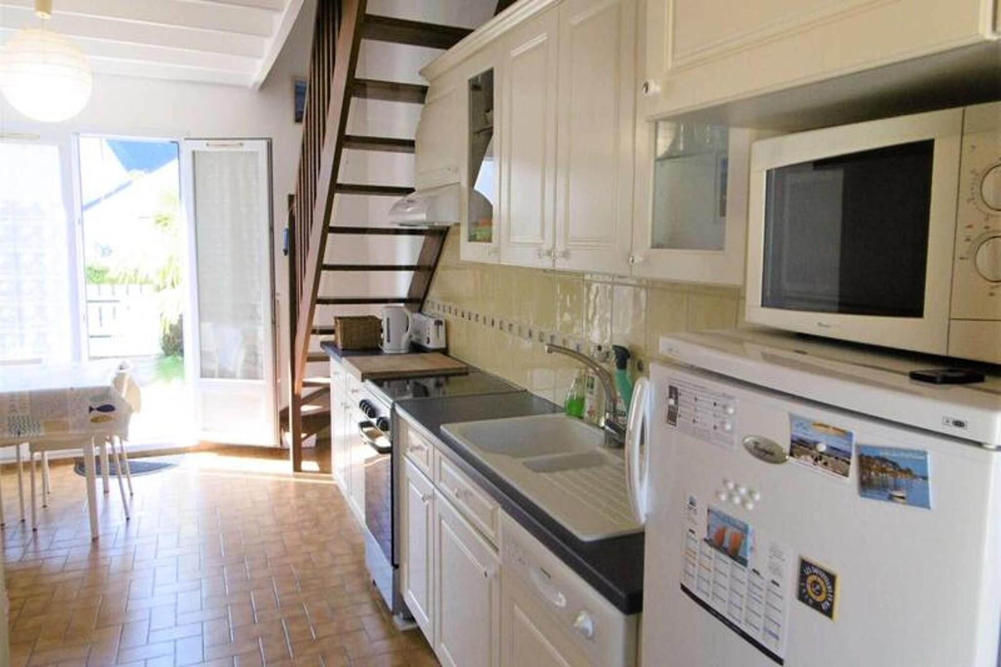 This cozy 37 m² holiday home is perfect for families or small groups, offering two bedrooms: one with a double bed and another with two single beds. The living room features a BZ-type sofa bed, allowing the home to comfortably sleep up to 6 people. The property is not pet-friendly, and bed and bathroom linens are not provided but are available for rent. Guests can also opt for a cleaning service at the end of their stay, and a tourist tax applies. Ideally located near the beach and local shops in St Jacques en Sarzeau, the residence provides easy access to a variety of nearby attractions. Explore the beautiful coastline, indulge in fresh local produce at the markets, or relax at nearby cafes and restaurants. For those seeking outdoor fun, the residence features a communal green space with a bowling green, perfect for enjoying sunny days. The holiday home includes a fully equipped kitchenette with a microwave, oven, and fridge, as well as a comfortable living area. The bathroom features a bathtub, and separate toilets add extra convenience. The property’s enclosed garden comes with a terrace, garden furniture, and a barbecue, offering a peaceful spot for dining al fresco or relaxing after a day of exploring.