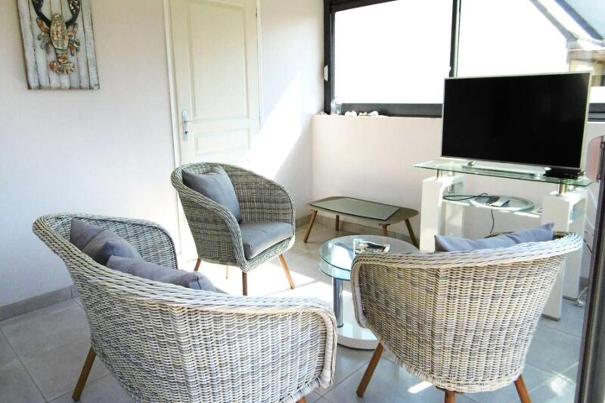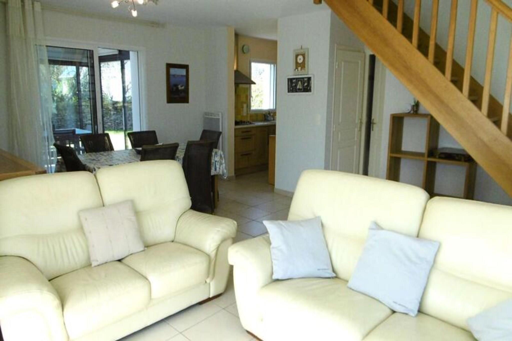 En kort gåtur fra den gyldne sandstrand ved St. Jacques-stranden tilbyder dette charmerende hus på 110 m² et perfekt tilflugtssted for familier og grupper, der søger en afslappende kystferie. Omgivet af den fredfyldte skønhed ved Bretagnes kystlinje kombinerer ejendommen moderne komfort med en rolig atmosfære, der inviterer dig til at slappe af og skabe uforglemmelige minder ved havet. Uanset om du nipper til kaffe på verandaen eller nyder en grillfest i den lukkede have, er hvert øjeblik her fyldt med den forfriskende duft af havbrisen. Indenfor er huset omhyggeligt designet på tværs af to etager til at rumme op til otte gæster. Stueetagen har et fuldt udstyret køkken, der åbner ud til en hyggelig stue med to komfortable sofaer, hvilket skaber et indbydende rum til fælles måltider og afslapning. To soveværelser, et med en dobbeltseng og det andet med to enkeltsenge, suppleres af et badeværelse med bruser og et separat toilet. Ovenpå finder du to yderligere dobbeltværelser, hver med en garderobe, samt et andet badeværelse og separat toilet. Hjemmet er udstyret med alle de nødvendige faciliteter, herunder køleskab, ovn, mikrobølgeovn, opvaskemaskine, vaskemaskine og tv, hvilket sikrer et stressfrit ophold. Gå udenfor og oplev ejendommens dejlige udendørsområder. Den lukkede have kan prale af en solrig terrasse med havemøbler, liggestole og en grill, perfekt til spisning under åben himmel eller blot at nyde de fredelige omgivelser. Der er bekvem parkering foran huset, og gæsterne kan benytte sig af et Free Pass' Air&Mer-kort, der tilbyder rabat på lokale aktiviteter. Med sin nærhed til stranden og charmen ved Bretagnes kystlandskab er dette hus en ideel base for at udforske regionen eller blot nyde en rolig ferie. Uanset om du bygger sandslotte, udforsker nærliggende stier eller nyder frisk fisk og skaldyr, lover denne ejendom en mindeværdig ferieoplevelse for alle.