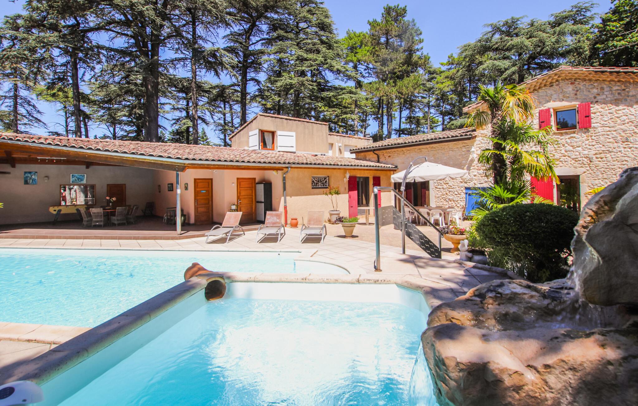 Omgivet af den betagende natur i Rhônedalen inviterer dette rummelige landhus jer til harmoniske feriedage med familien eller sammen med venner. Den autentiske og generøse indretning byder på masser af plads til fælles måltider og hyggelige stunder i godt selskab. Spil en omgang billard, fordyb jer i bibliotekets bøger, hold en filmaften, eller nyd et glas vin ved pejsen.