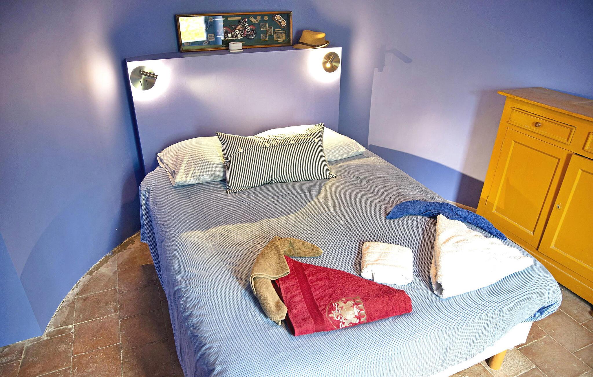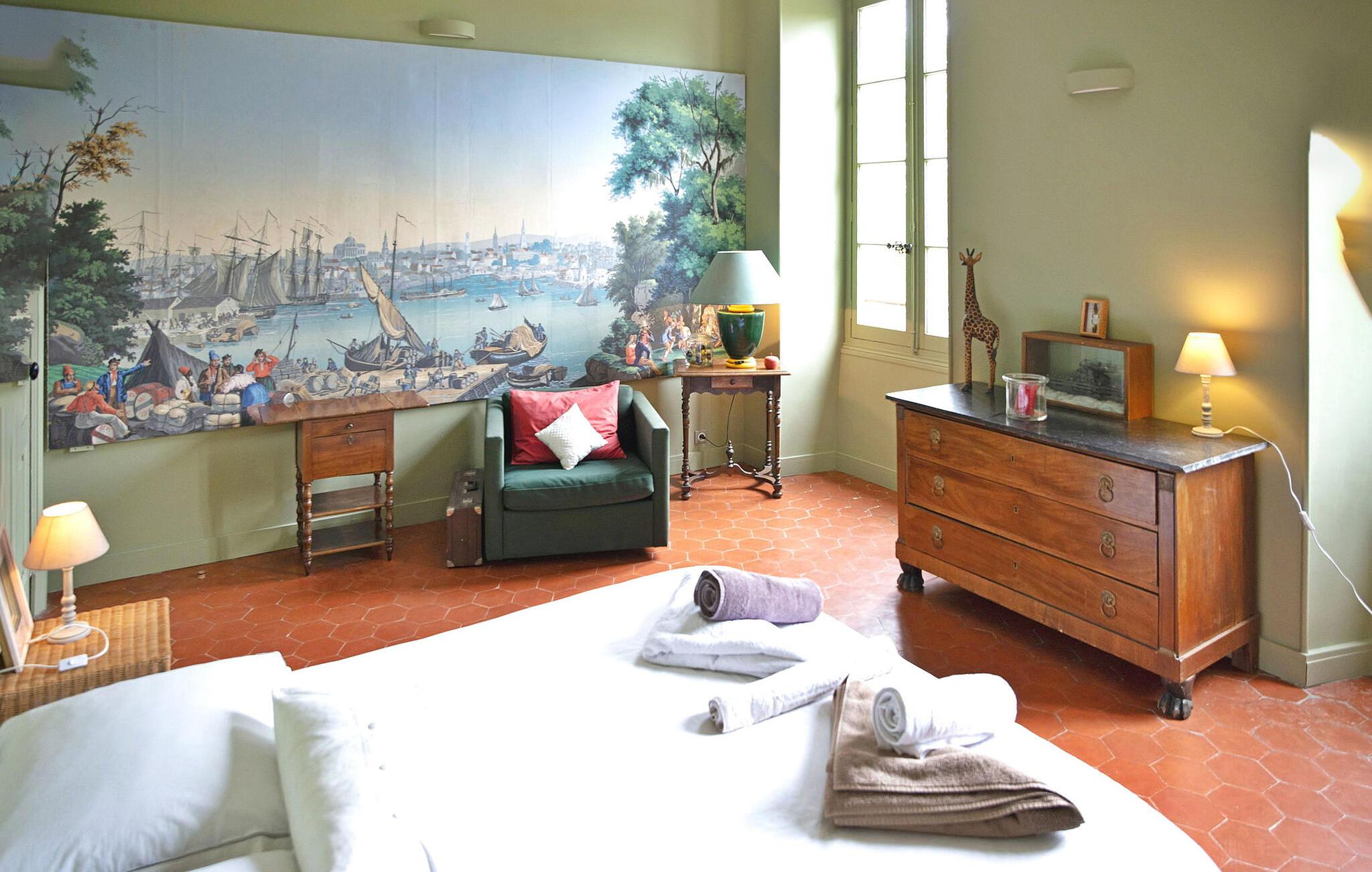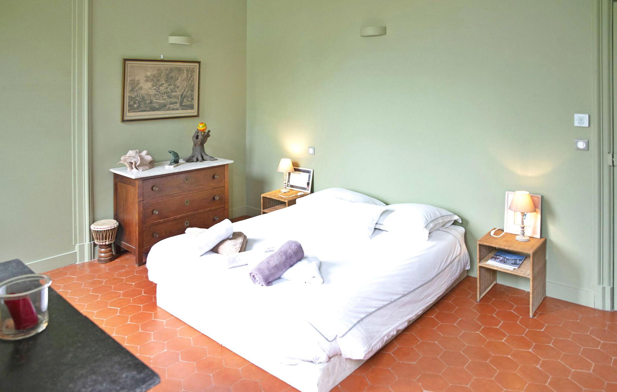 Dette smagfuldt renoverede slot fra det 13. århundrede, omgivet af rummelige grunde, byder på en fantastisk udsigt over Cevennerne. Stueetagen består af en entré, der fører til en lys opholdsstue, et veludstyret køkken, en spiseplads, en vestibule med toilet og et lille læseområde. Den centrale trappe fører til slottets forskellige fløje. Den venstre fløj har et fitnessrum, soveværelser med naturskøn udsigt og et brusebad. I mellemtiden indeholder højre fløj et vaskerum, soveværelser, badeværelser og en overdækket terrasse med udsigt over skoven. Udendørs er der en have i fransk stil, flere siddepladser, en swimmingpool med terrasse, et poolhus, underholdningsområder som en dartskive, bordtennisbord og en køkkenhave. Vigtige bemærkninger omfatter, at venstre fløj er klimatiseret, fraværet af et gelænder på vindeltrappen og behovet for opsyn på den lavrællede overdækkede terrasse på grund af dens bevarede arkitektoniske stil. Slottet ligger i Gard i Sauve.