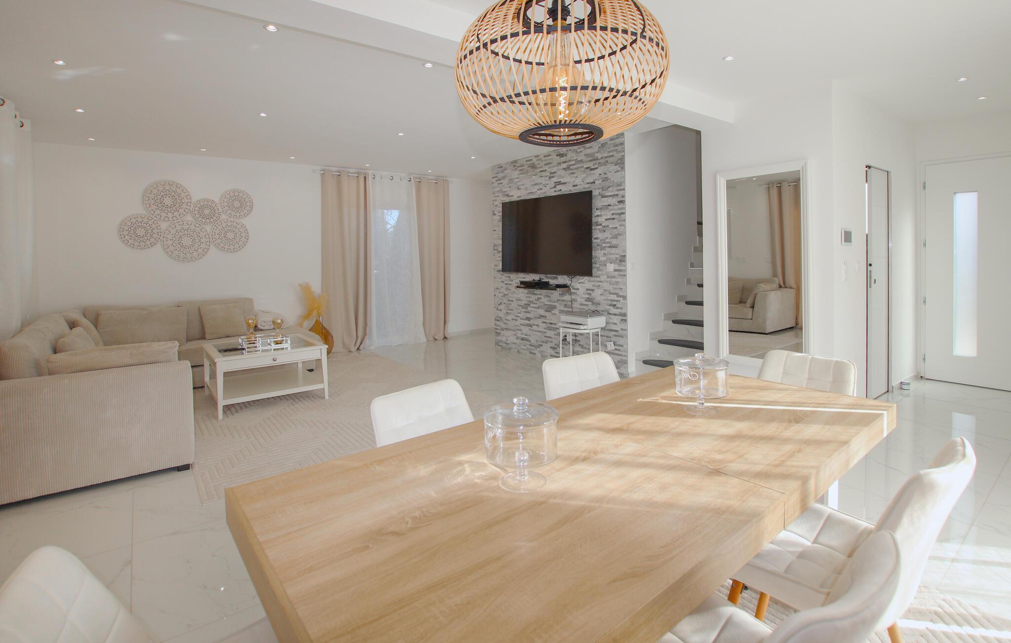 Et højdepunkt ved huset er den forfriskende private udendørspool, hvor I kan bade uforstyrret, efterfulgt af en solbadning på den rummelige sydvendte terrasse i haven med oliventræer og palmer. Det amerikanske køkken, der åbner ud mod en klimatiseret, skyggefuld pergola, bliver jeres favoritsted til alle måltider udendørs.