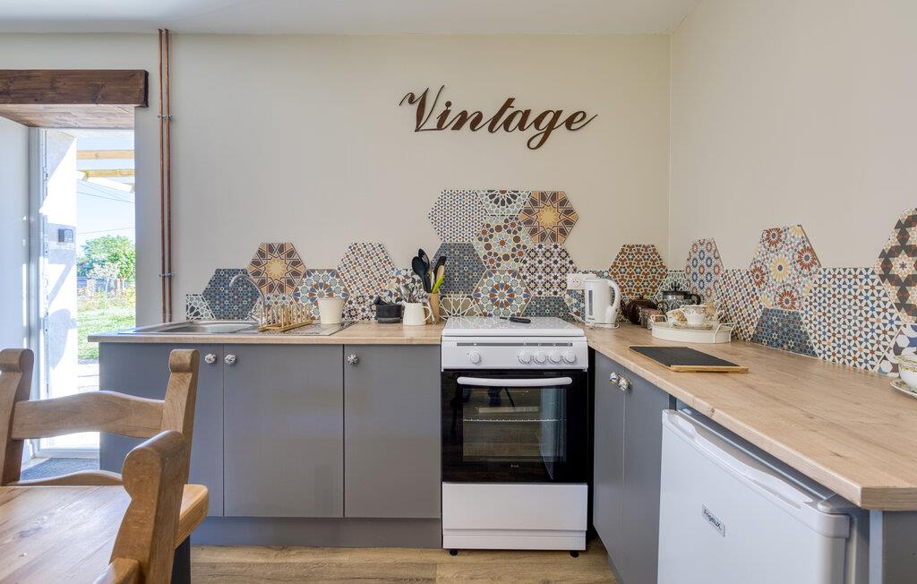 Dette autentiske feriehus i Savigné byder jer velkommen i rolige omgivelser og er ideelt til en afslappende ferie på landet. Oplev den særlige atmosfære i et renoveret hus med historisk karakter og moderne komfort. Gør det behageligt i den hyggelige opholdsstue med de kærligt udvalgte møbler. Tilbered dagens måltider i det åbne køkken og brug spiseområdet til fælles stunder.