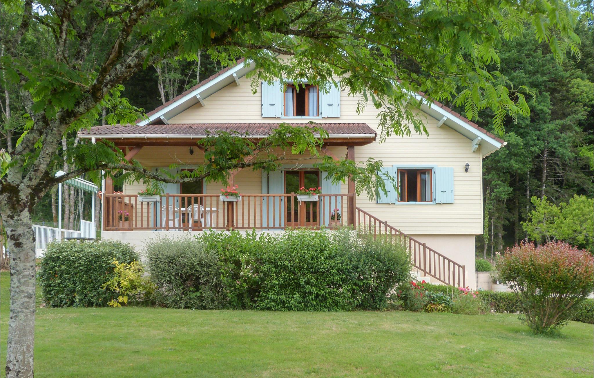 Det rummelige hus har et særligt imponerende opholds- og spiseområde og giver jer mulighed for at slappe af med masser af plads. Den overdækkede terrasse foran huset er ideel til udendørs spisning, og derfra kan I også nyde udsigten over plænen til det åbne land udenfor. Der er grill på en anden terrasse, herfra har man udsigt til poolen. Stueetagen i dette hus er hvor I bor og spiser på øverste etage er der soveværelser med store senge og køjesenge. Det smukke marked Nontron er omkring 7 km væk, den smukke by Brantôme omkring 20 km. Vi kan anbefale slottene Hautefort, Bourdeilles og Pyguilhem som udflugtsmål. Grotte de Villars er også meget populær. Til kaffe og shopping skal I kun rejse 3 km.