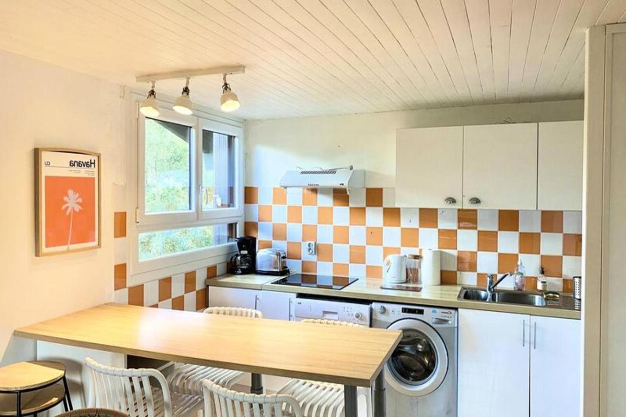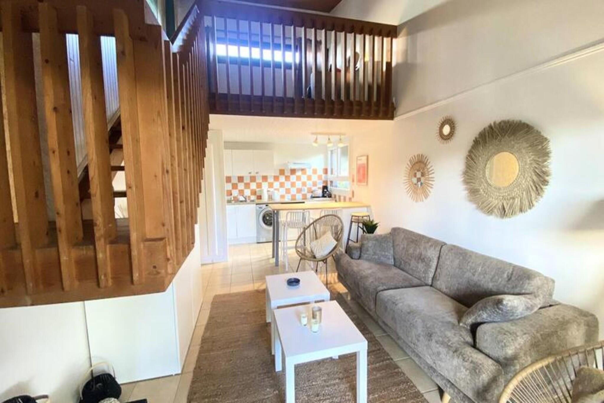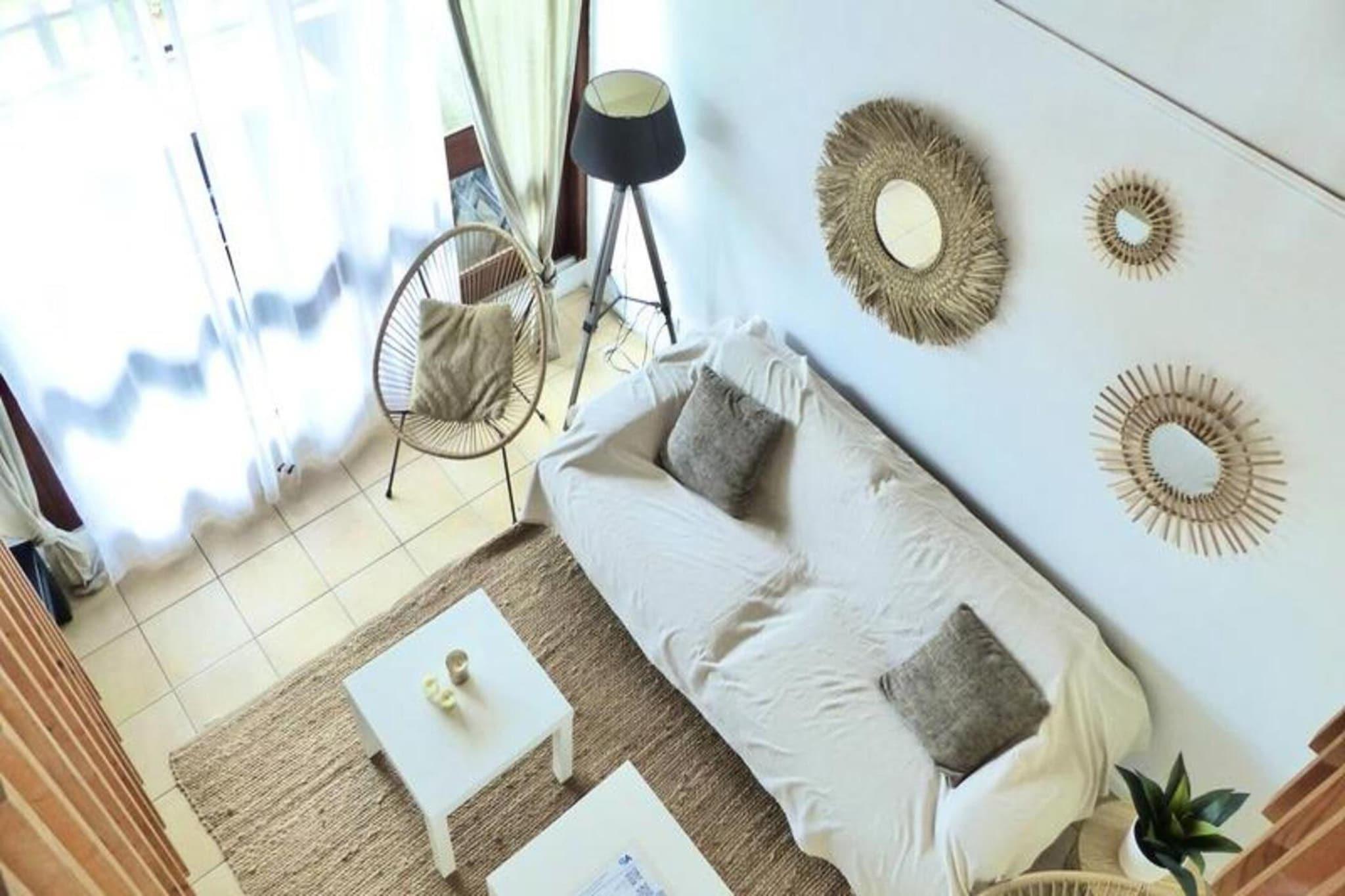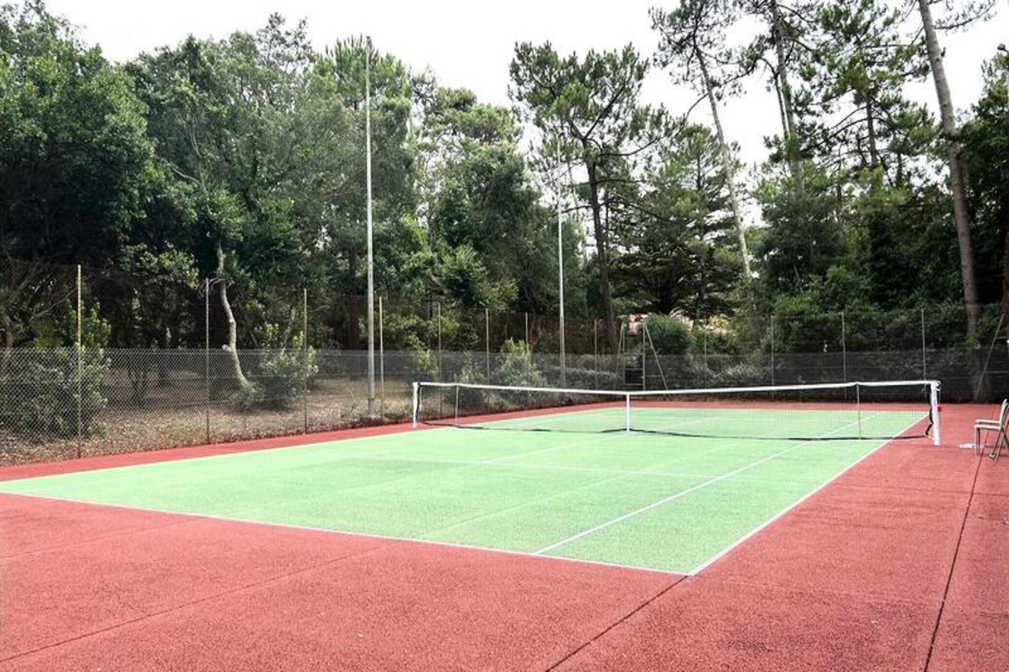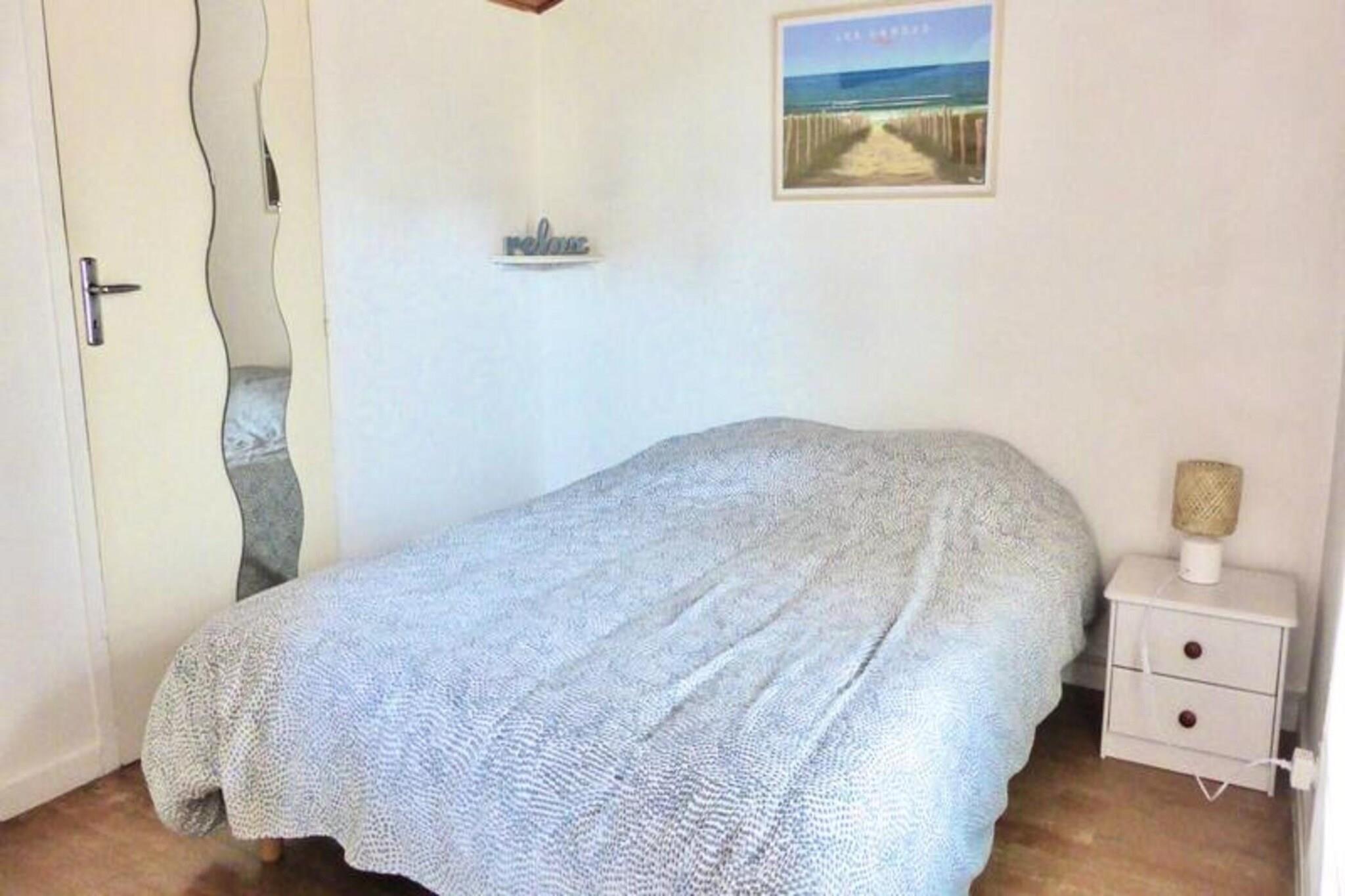 Denne duplex lejlighed i Seignosse Le Penon tilbyder et behageligt ophold med balkon med udsigt over boligens grønne område. Det kan rumme op til seks gæster med to 140 cm senge (en i et soveværelse, en på mezzaninen) og en 140 cm sovesofa på mezzaninen. Politikker for kæledyr er ikke specificeret. Offentlig parkering er tilgængelig foran boligen. Adgang til boligens tennisbane er inkluderet. Boligen er ikke tilgængelig for bevægelseshæmmede. Lejlighedens popularitet stammer fra dens rummelige planløsning og nærhed til strand, butikker og et stort grønt område med fyrretræer. Denne placering er ideel til strandferier og til udendørsaktiviteter. Lejligheden har en indgang, en stue/stue/køkken (ca. 22 kvm) med udgang til en overdækket terrasse, et soveværelse (ca. 9,6 kvm), der også åbner ud til terrassen, et brusebad, et toilet og en stor mezzanin (ca. 10,5 kvm) med soveværelse og sovesofa. Det indrettede køkken omfatter køleskab, fryser, vaskemaskine, opvaskemaskine, keramisk kogeplade og ovn. Sengetøj er ikke inkluderet, men kan lejes. Opvarmning er til rådighed.