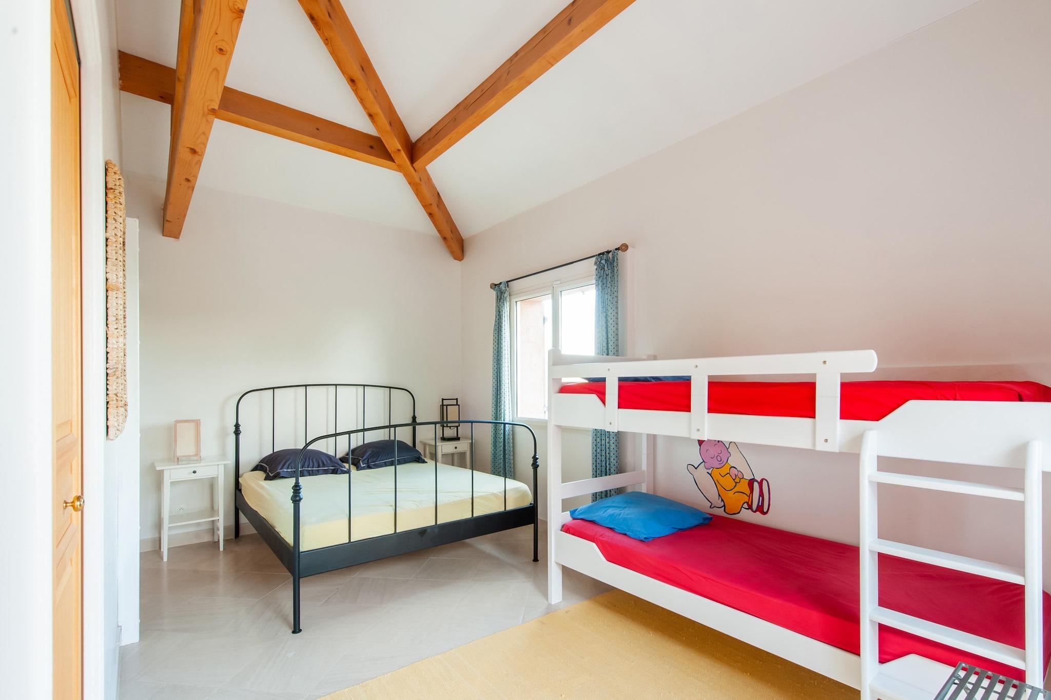 Dette charmerende feriehus på en smuk ejendom byder på en privat opvarmet swimmingpool, perfekt til forfriskende omgange, og en rummelig, fuldt lukket have ideel til at nyde lækre hjemmelavede grillmad. Det rummer komfortabelt to familier, hvilket gør det til et fremragende valg for gruppeferier. Naturelskere kan udforske naturskønne vandreture i nærheden, mens golfentusiaster kan spille tee på den berømte Terre Blanche-bane, kun 7,5 km væk. Den maleriske Lac de Saint-Cassien ligger mindre end 18 km fra ejendommen. Inden for en radius på 2 km finder du forskellige restauranter, hvor du kan nyde hyggelige aftenmåltider. Start din dag med en afslappende kop te på balkonen og tilbered morgenmad i det veludstyrede køkken. Hvert soveværelse har eget badeværelse, og der tilbydes aircondition mod et tillægsgebyr. Der tilbydes praktisk parkering på ejendommen, hvilket sikrer et komfortabelt og problemfrit ophold.