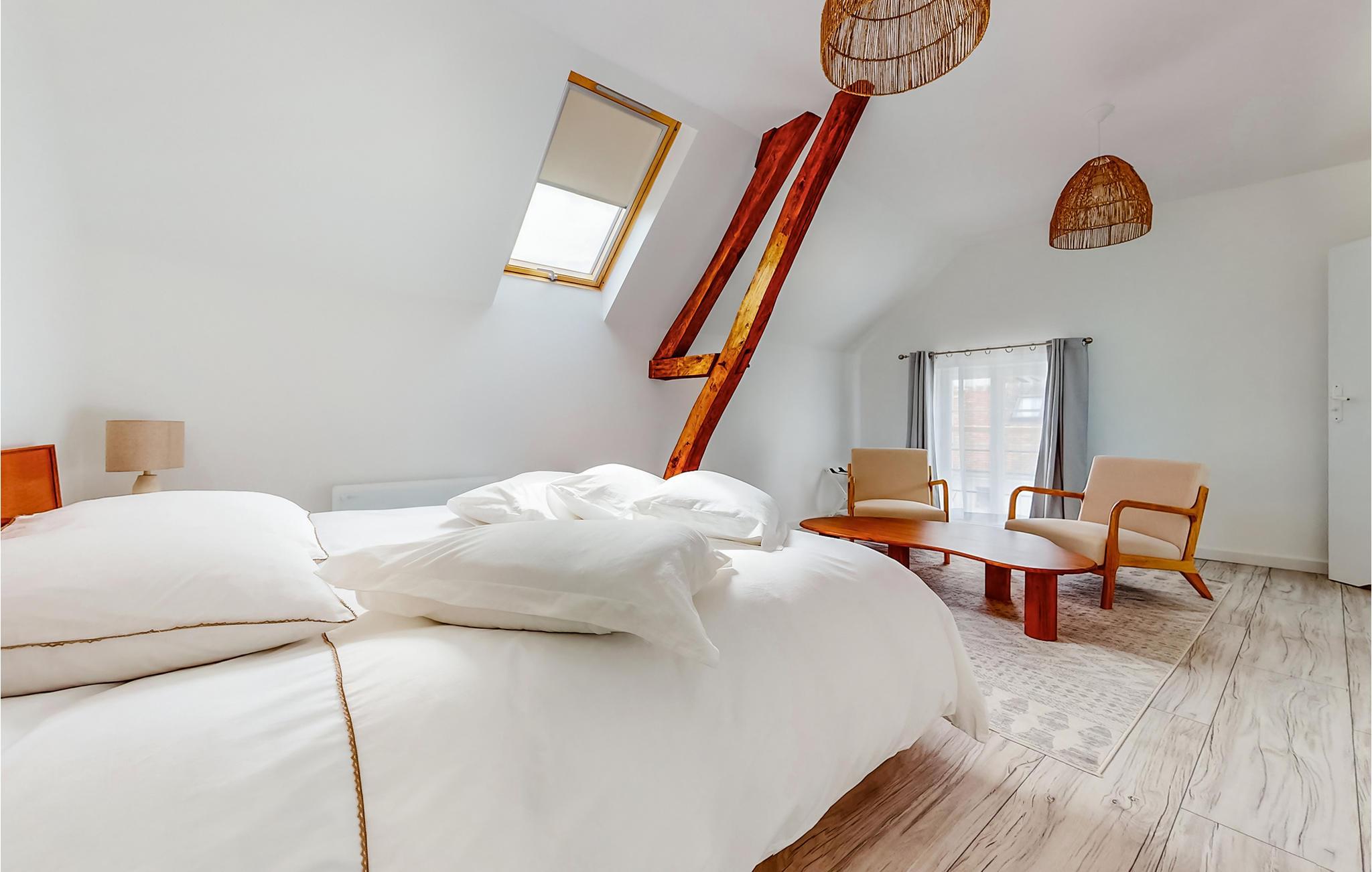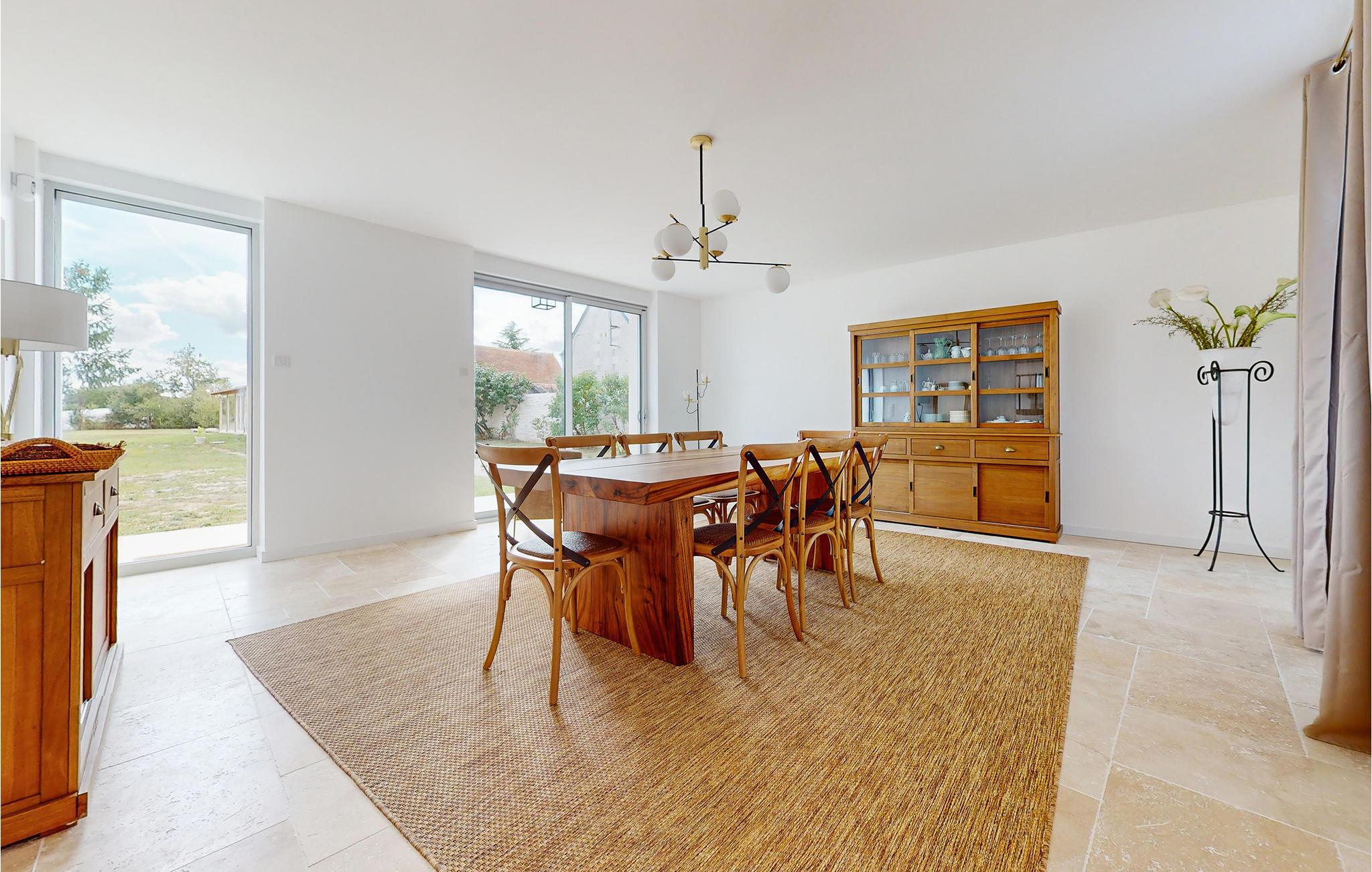 Dette indbydende feriehus har en attraktiv beliggenhed, kun en kort køretur fra Beauval Zoo, og er et ideelt udgangspunkt for udflugter i Loire-dalen. Find jer godt til rette i de attraktive, lyse værelser, som fortryller med deres subtile, neo-rustikke møbler. Det lange spisebord lægger op til at nyde måltiderne sammen, om aftenen kan I slappe af i komfortable siddegrupper og sofaarrangementer, og i stuen skaber brændeovnen en hyggelig atmosfære.