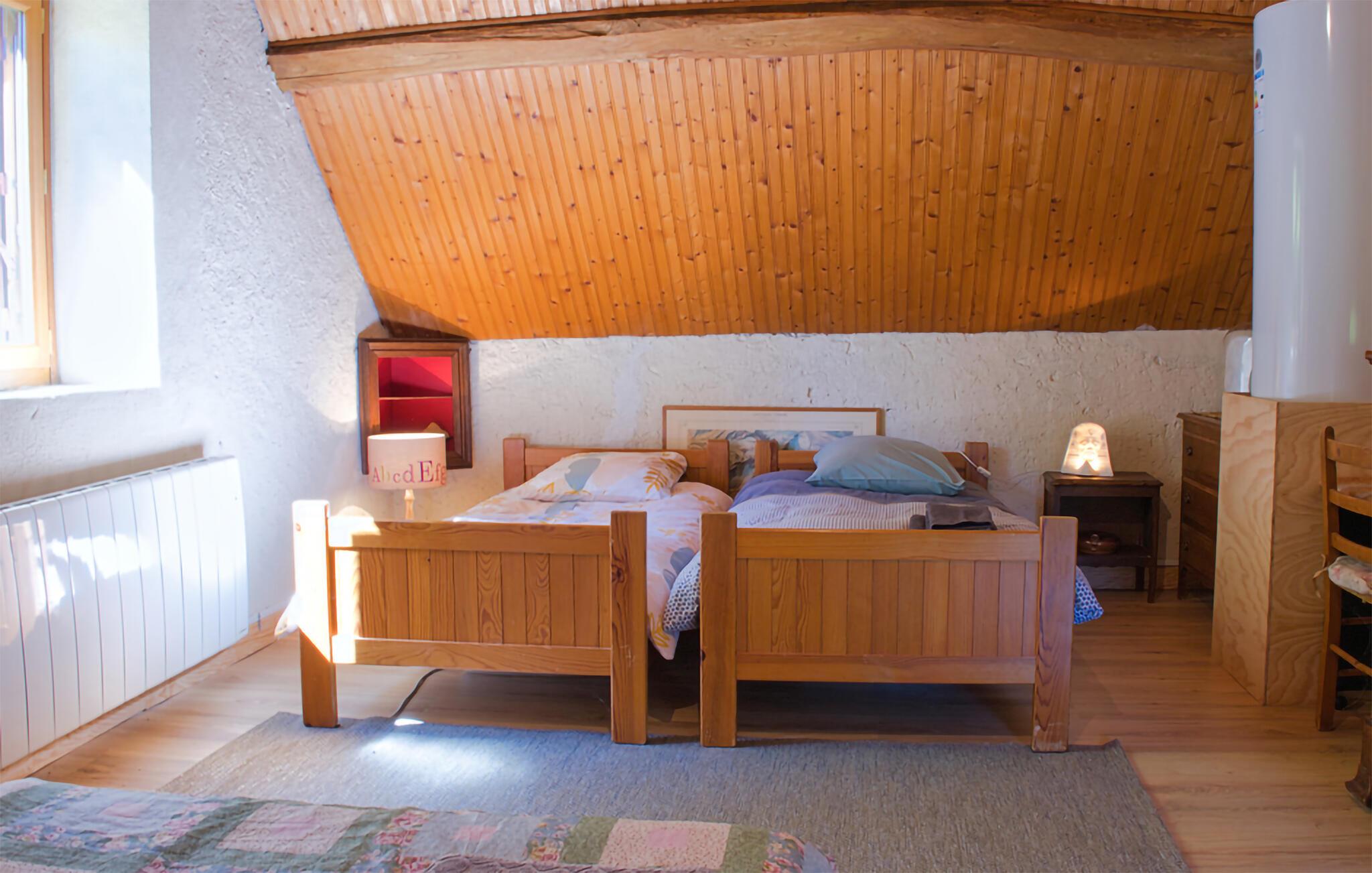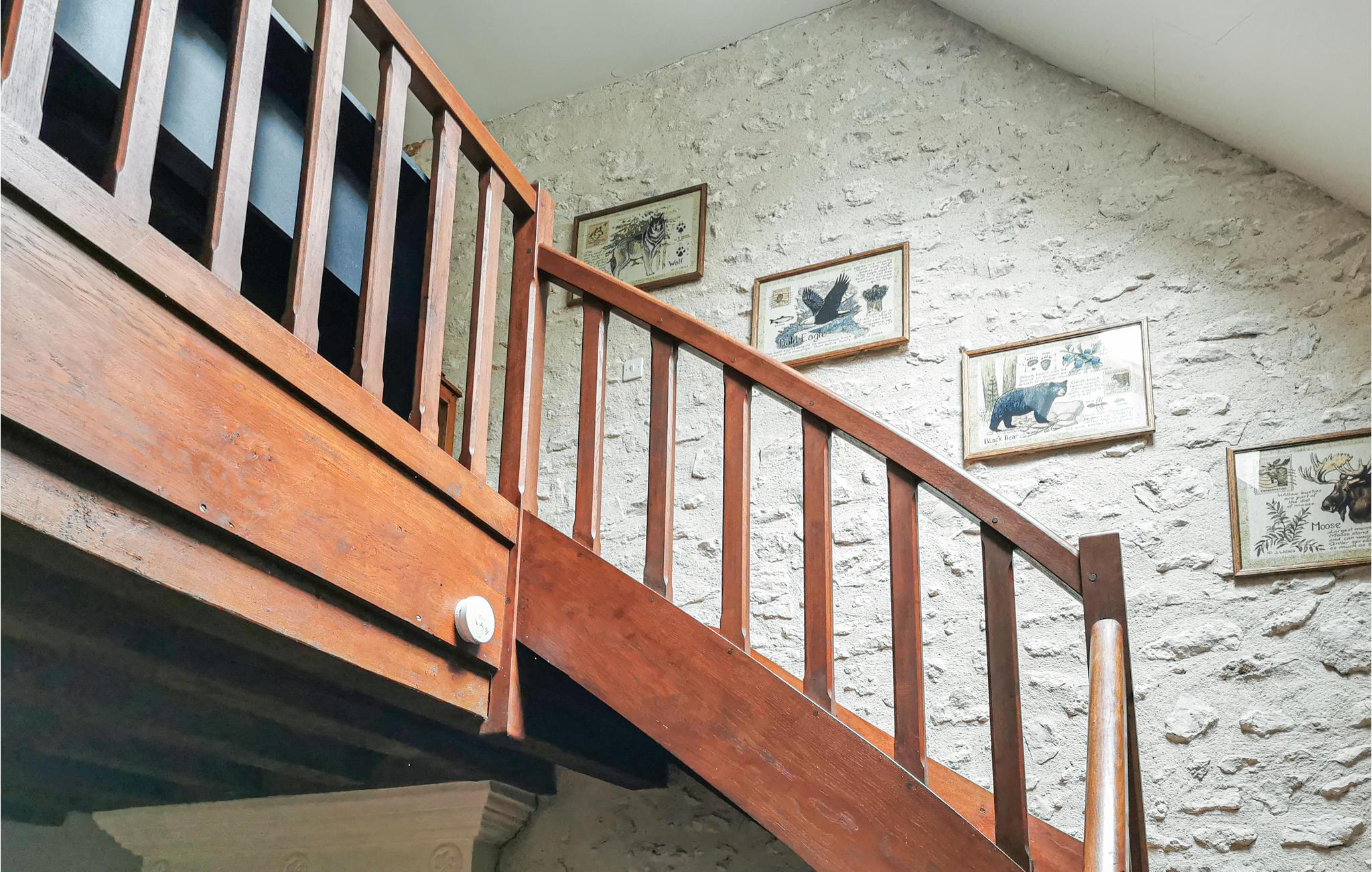 Nyd jeres ophold i et autentisk hus omgivet af en naturpark. Den rummelige opholdsstue har rustikke træbjælker, stenvægge og en pejs. Slap af i sofaen eller tilbring hyggelige aftener ved det lange spisebord, hvor hele familien nemt kan sidde. Tilbered jeres måltider i det hyggelige køkken i landlig stil, og brug det lille bord til morgenmad om morgenen.