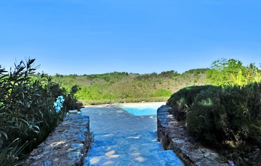 Dette feriehus på landet i Sergeac, Dordogne, tilbyder en rummelig bolig med forskellige faciliteter til et behageligt ophold. Stueetagen har en stor stue med rigelig siddepladser, en spiseplads med et bord til 14 og et veludstyret køkken med moderne apparater. Stueetagen er også vært for master soveværelset komplet med ensuite badeværelse. På første sal, tilgængelig via forskellige trapper, finder du endnu et soveværelse med eget badeværelse plus tre yderligere soveværelser, der deler to familiebadeværelser. Udenfor byder ejendommen på et parkeringsområde, to overdækkede terrasser - den ene støder op til køkkenet og den anden er forbundet med et soveværelse, et stort landområde med græsplæner og en frugthave, og en privat swimmingpool på 12m x 5m, sikret af et alarmsystem og tilbyder komfortable liggestole ved de brede trin. Poolen varierer i dybden fra 0,80 m til 1,80 m, hvilket sikrer sikker og behagelig svømning. Beliggende på landet i Dordogne, er ejendommen tættest på de små bjerglandsbyer Sergeac og Thonac. Nyd din ferie i en bondegård (longère) din ferieudlejning i i Dordogne i Quercy - Périgord.