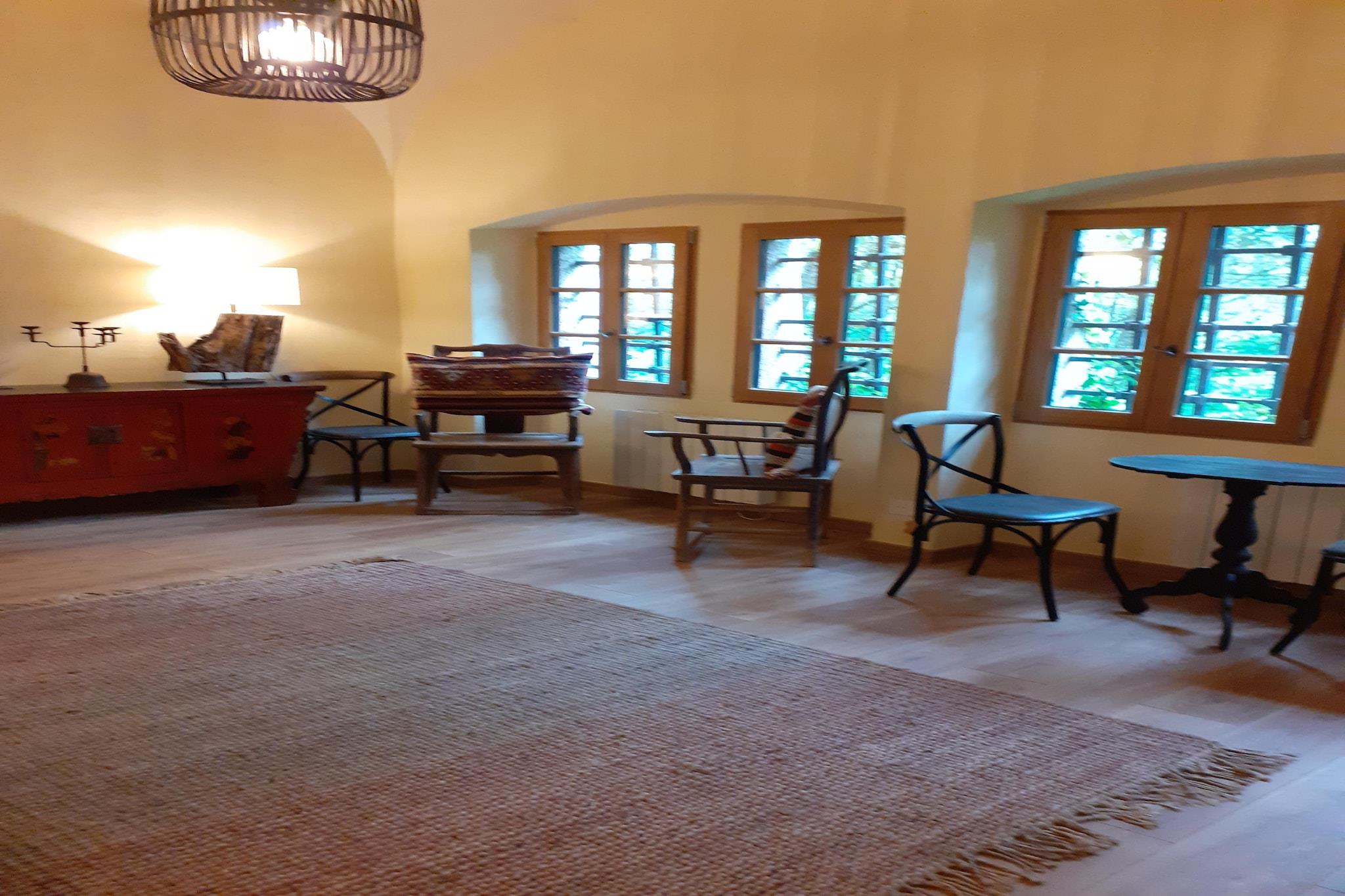 Denne smukke renoverede lejlighed ligger i et slot i Serrières-en-Chautagne. Der er 1 soveværelse med dobbeltseng og i stuen er der sovesofa velegnet til 2 børn (140*170). Perfekt til en ferie med din partner og/eller med din familie. I den store have er en swimmingpool, som du deler med de andre gæster. Fra poolen har du også en smuk udsigt over de franske alper. Slottet ligger i Rhone-dalen, og vandsport er af største betydning i denne region. Lac du Bourget ligger 10 km væk, og fra slottet er der kun en times kørsel til Genevesøen. Aix les Bains, kendt for sine termiske bade, ligger også en times kørsel derfra. Om vinteren er dette det ideelle sted for alle former for bjergsport. I denne lejlighed har du adgang til et professionelt udstyret køkken. Køkkenet er udstyret med alle nødvendige apparater; en professionel ovn, flere køle/fryseskabe, 3 vaske, en lang vask, et komfur med 6 blus, en ekstra bordplade og service. Vaskemaskine og tørretumbler er kun tilgængelige fra onsdag til lørdag.