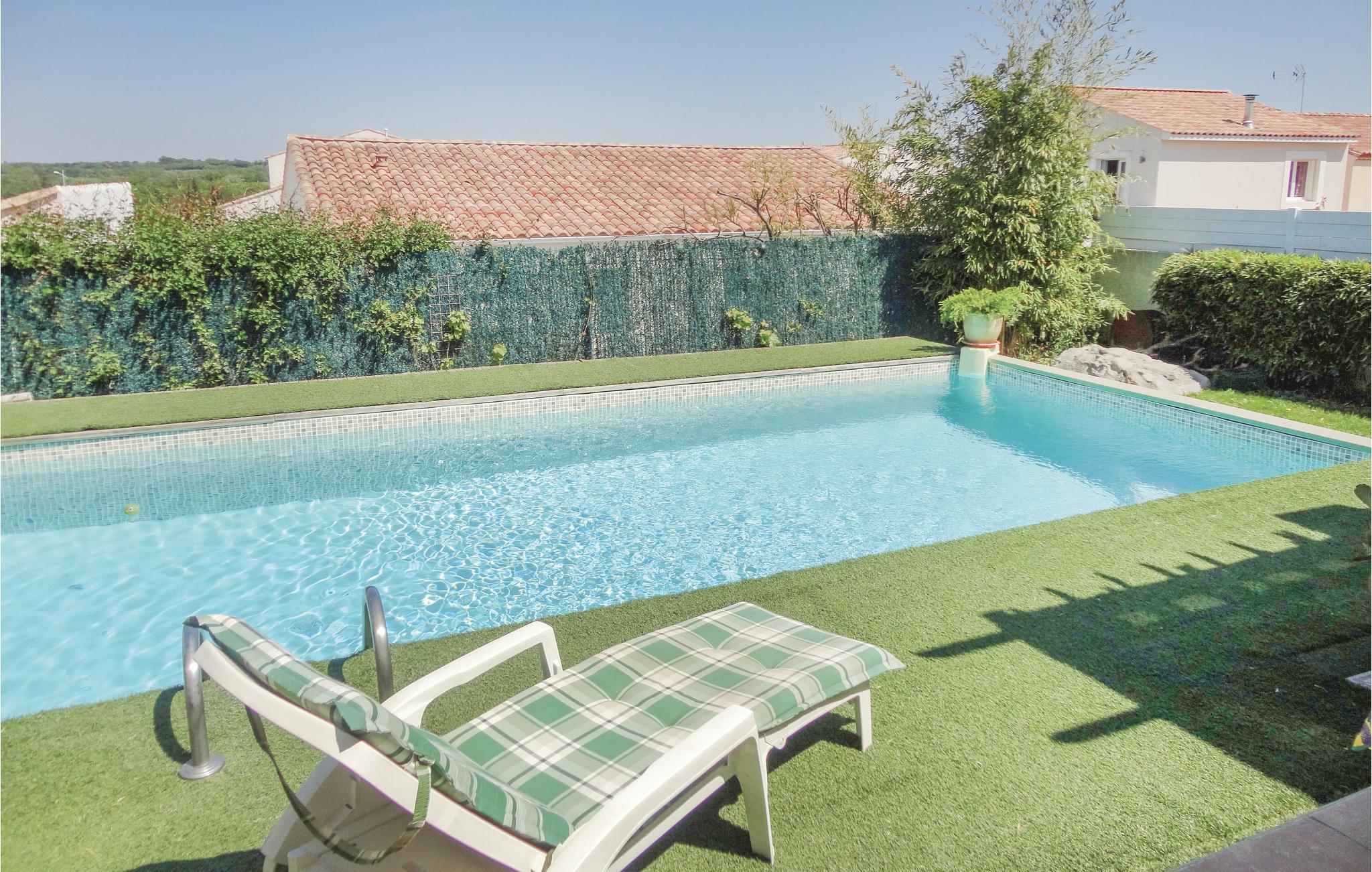 Denne indbydende villa i stueplan venter jer i Servian. Indretningen er lys og behagelig og I har en herlig pool samt en solrig terasse til rådighed. Objektet er det perfekte udgnagspunkt for mange aktiviteter i en region, der har rigtig meget at byde. Oplev Pézenas (14 km) med sin kirke Saint-Jean eller den maleriske mølle Moulin du Concasseur. Den historiske bykerne med mange monumenter samt et farverigt og livligt marked lærer I bedst at kende på en gåtur. Béziers er også et besøg værd. Opdag den højt beliggende katedral Saint-Nazaire og den gamle slusetrappe i Fonserannes. Gå ikke glip af den årlig tilbagevendende kulturfest "Fèria de Béziers". Tag på bådstur på Canal du Midi og spis regionens bedste østers i Bouzigues. Smukke strande finder I i Cap d'Agde og Valras (25 km).