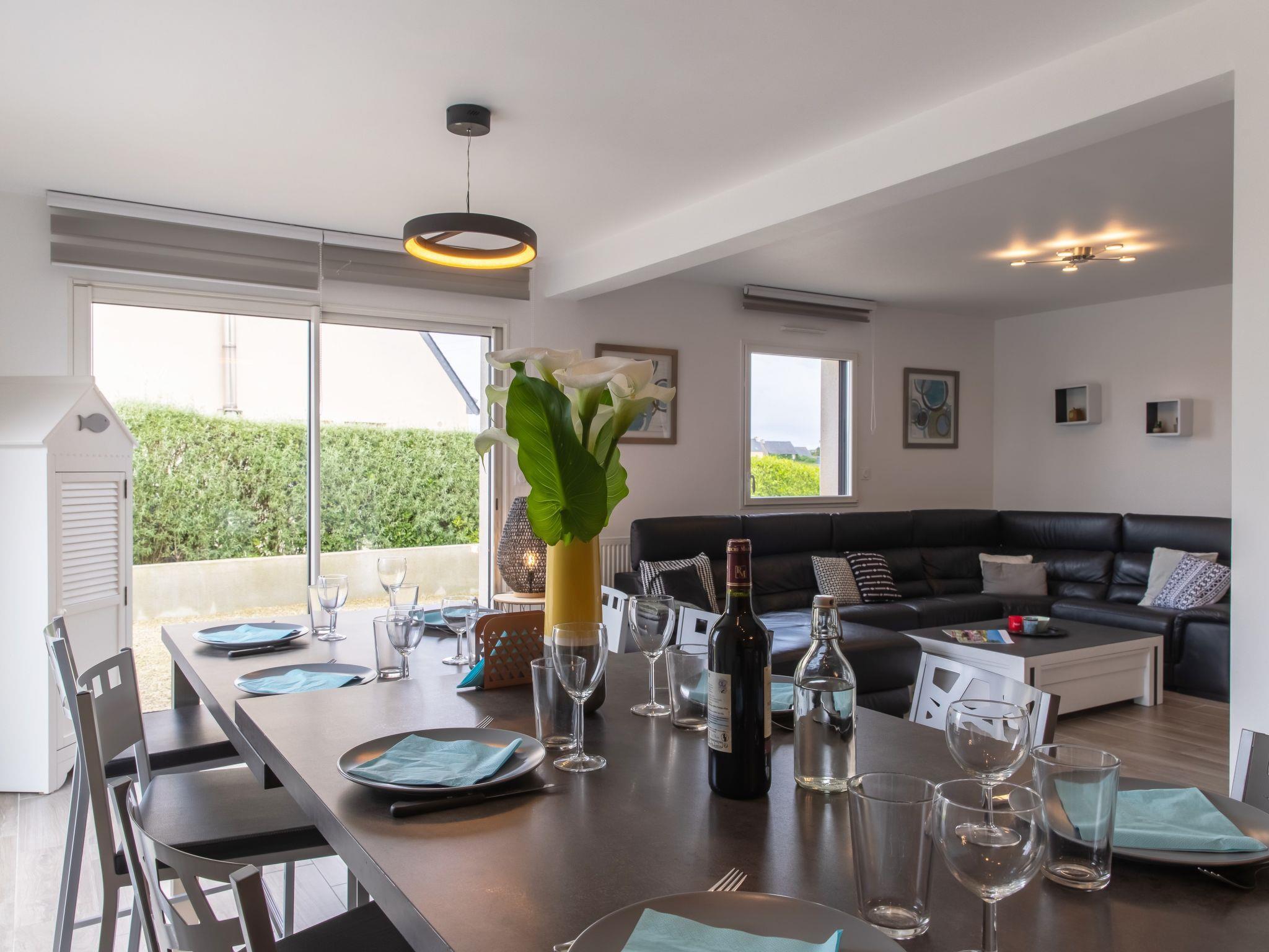 "La Villa du Pêcheur", 5-room house 150 m2 on 2 levels. Spacious and bright, comfortable and tasteful furnishings: large living room 40 m2. Exit to the garden, to the terrace. 1 room with 1 french bed (160 cm, length 200 cm), shower. Open kitchen (oven, dishwasher, 4 induction hot plates, toaster, kettle, microwave, freezer, electric coffee machine, Capsules for coffee machine (Magimix) extra) with dining table. Sep. WC. Upper floor: 1 room with 1 french bed (160 cm, length 200 cm). 2 rooms, each room with 2 beds (90 cm, length 200 cm). Shower, sep. WC. Electric heating. Terrace 16 m2, south facing position. Terrace furniture, deck chairs (4). Facilities: washing machine, dryer, iron, baby cot for up to 2 year olds, hair dryer. Internet (WiFi, free). Please note: non-smoking house. Smoke alarm. Offer by a private individual according to Art. 155, IV of CGI. 29276000031Q3