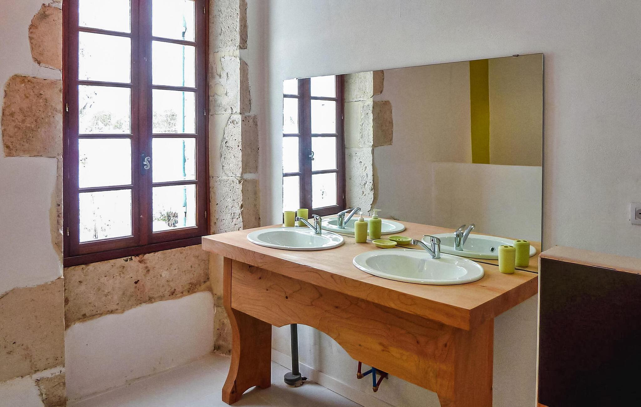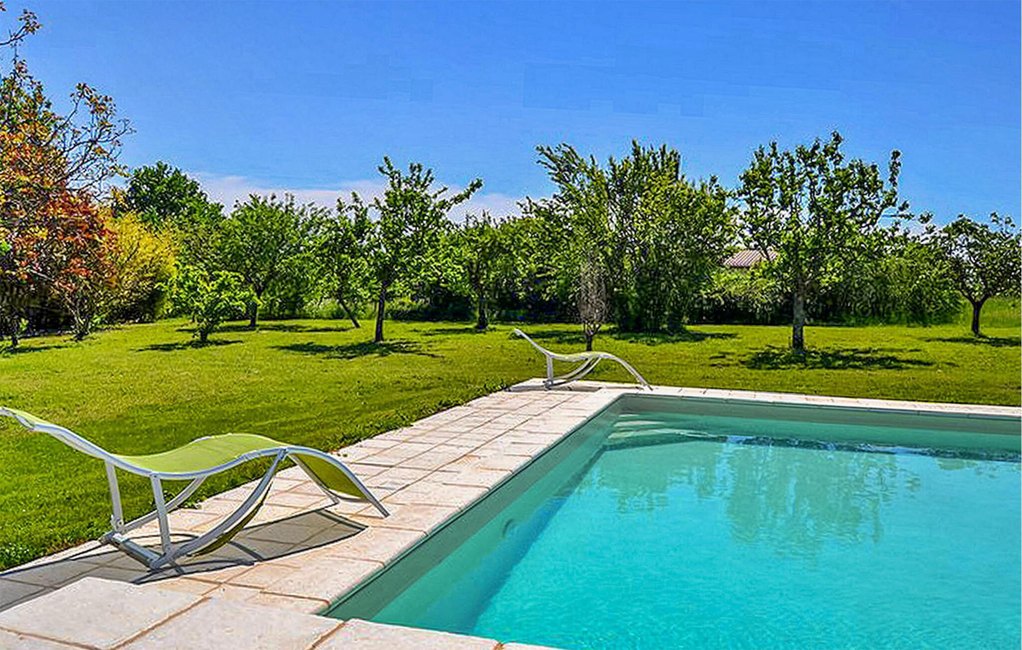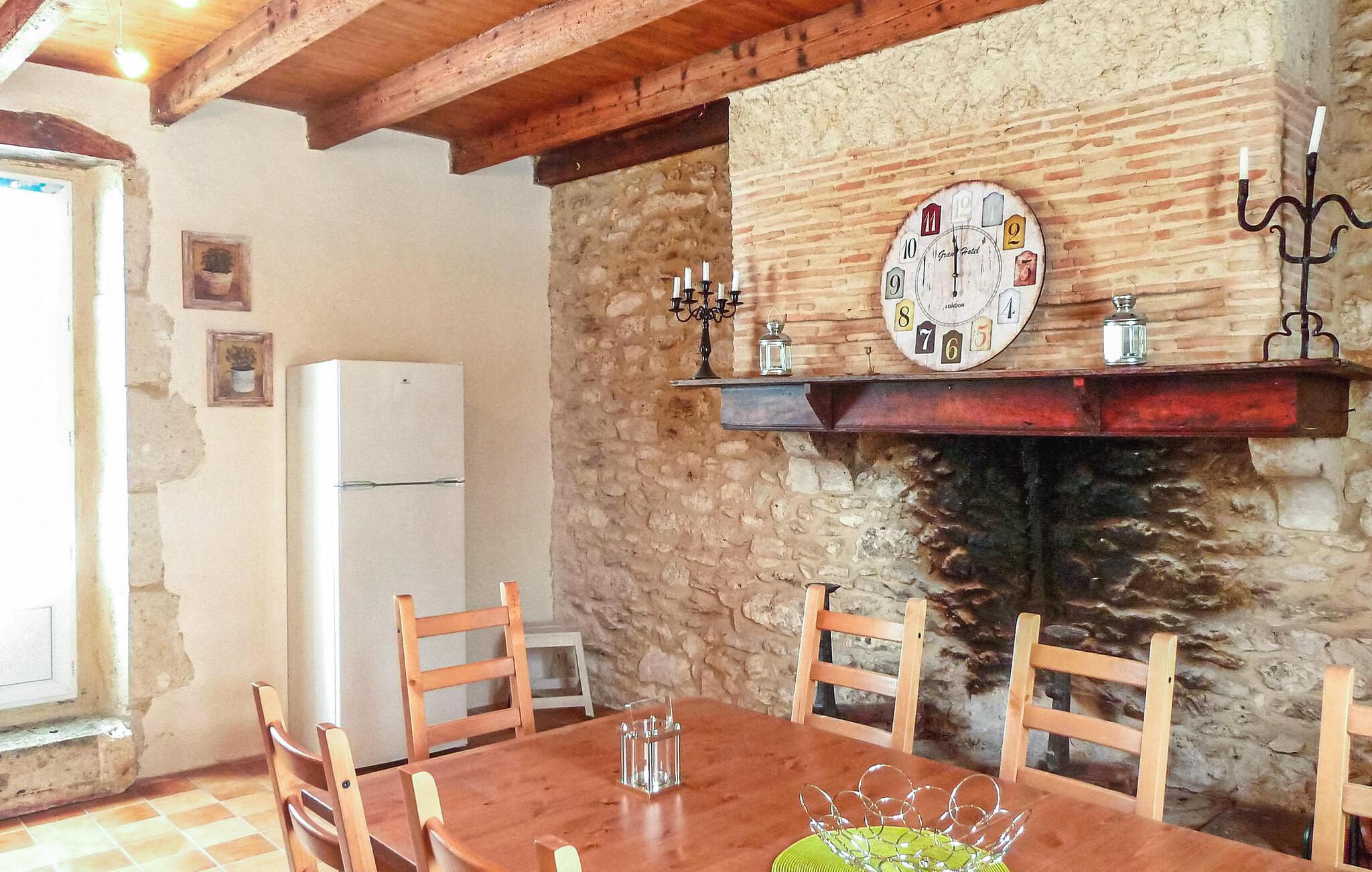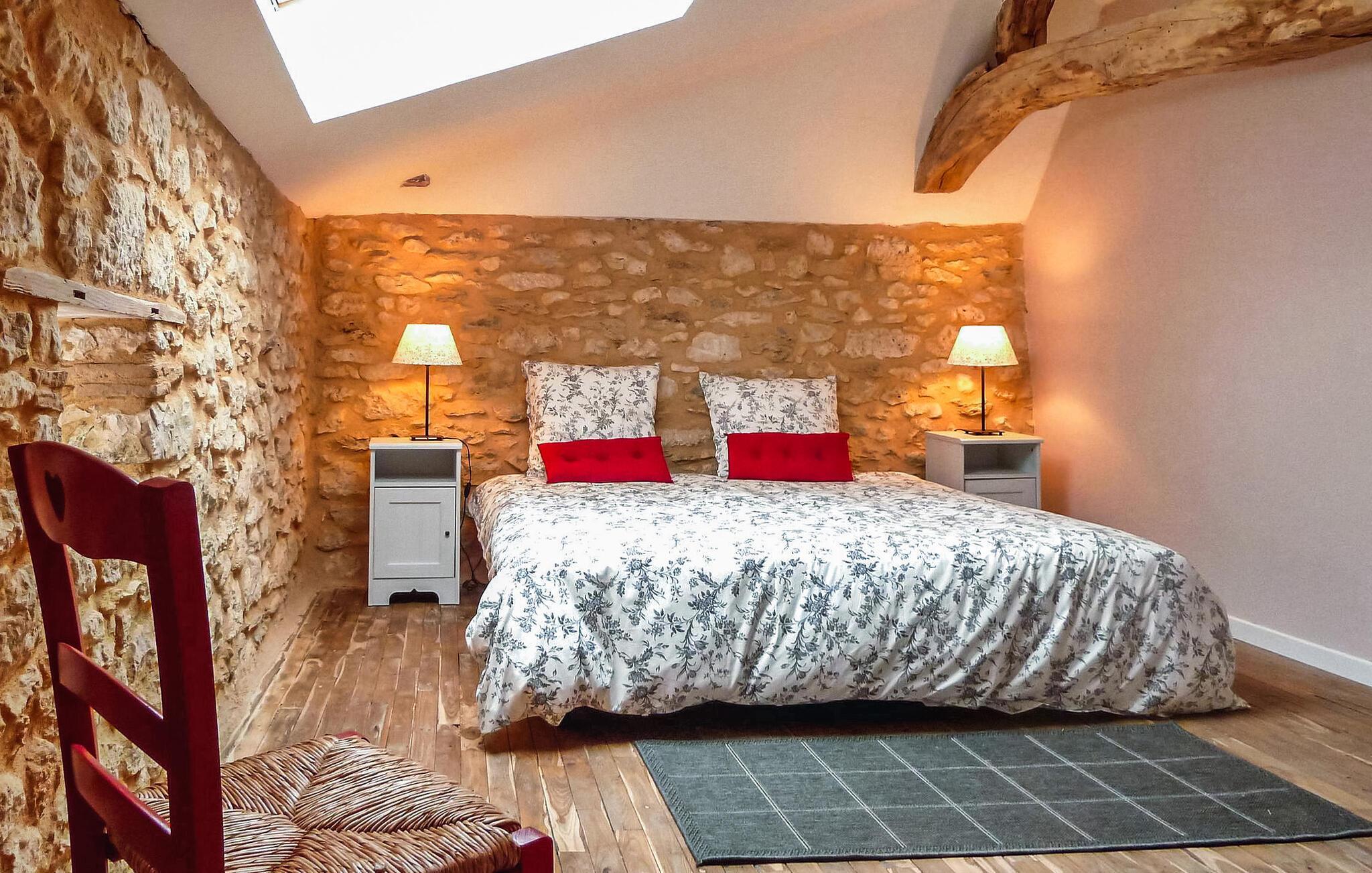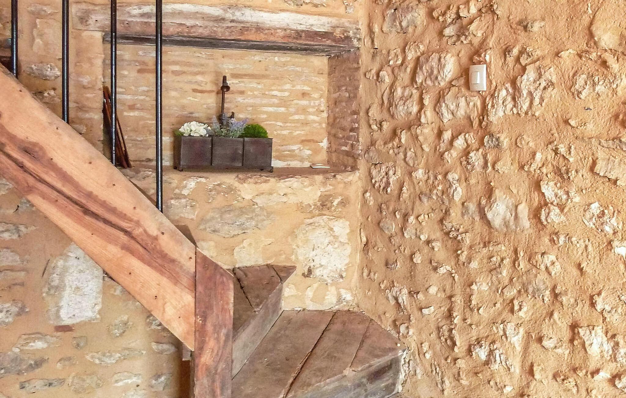 hjertet af Monbazillac-vinmarkerne i Perigord tilbyder dette stenhus med privat pool smagfuldt renoverede og lyse værelser opdelt i to etager. I stueetagen er der en rummelig stue/spisestue og et fuldt udstyret køkken sammen med et af soveværelserne og et brusebad. Gå til første sal, tilgængelig via trætrapper med et gelænder og børnesikkerhedslåge, for at finde de ekstra soveværelser. Udendørs faciliteter inkluderer en rummelig have udsmykket med møbler, en hængekøje og udendørs belysning. Der er en terrasse nær køkkenet med udsigt over frugtplantagen og den private pool, som er sikret af et alarmsystem og måler 8,5 mx 5 m. Poolområdet suppleres af en græsplæne og liggestole til afslapning. For vinentusiaster står ejerne til rådighed for at arrangere forskellige smagsoplevelser af Bergerac-vine efter anmodning. Denne feriebolig er beliggende i Dordogne i en stille landsby uden trafik. Den lille landsby La Font du Béarnais ligger omkring +/- 4 km fra Sigoules med alle nærbutikker. Der er en park med en legeplads i nærheden af kirken. Nyd din ferie i Dordogne i Quercy - Périgord.