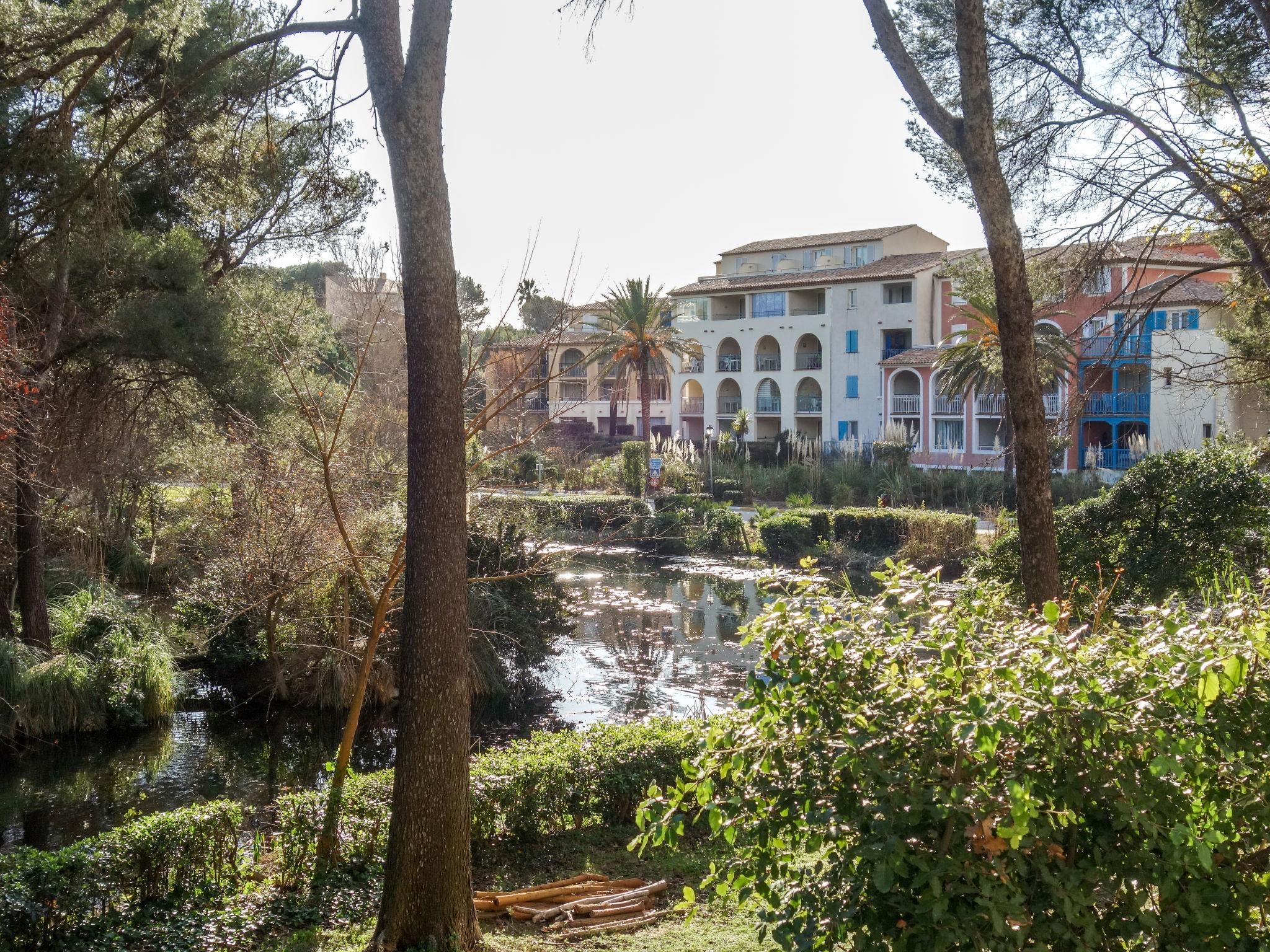 La Coudoulière: Residence "Les Rivages de Coudoulière", 3 storeys. 3 km from the centre of Six Fours, in a quiet position, 50 m from the sea, 100 m from the beach, in the countryside. For shared use: swimming pool (25 x 15 m, 340 m2, depth 60 - 160 cm, seasonal availability: 15.May. - 15.Oct. pool opening hours: 10:00-19:00) with internal staircase. Unconventional pool shape. Children's pool. In the complex: lift. Shop, restaurant, café 50 m, bus stop 200 m, sandy beach "La coudoulière" 100 m, park "Domaine de la Coudoulière" 50 m, lake Domaine de la Coudoulière 50 m. Sports harbour 50 m, golf course (18 hole) 13 km. Hiking paths: Sainte Baume, Sainte Victoire, Calanques Port-Cros, Porquerolles, Ile verte, Embiez, Figuerolles, Cassis. Please note: the keys‘ handover takes place by the agency Interhome in SIX FOURS LES PLAGES, 2 km. Additional accommodations can be booked.