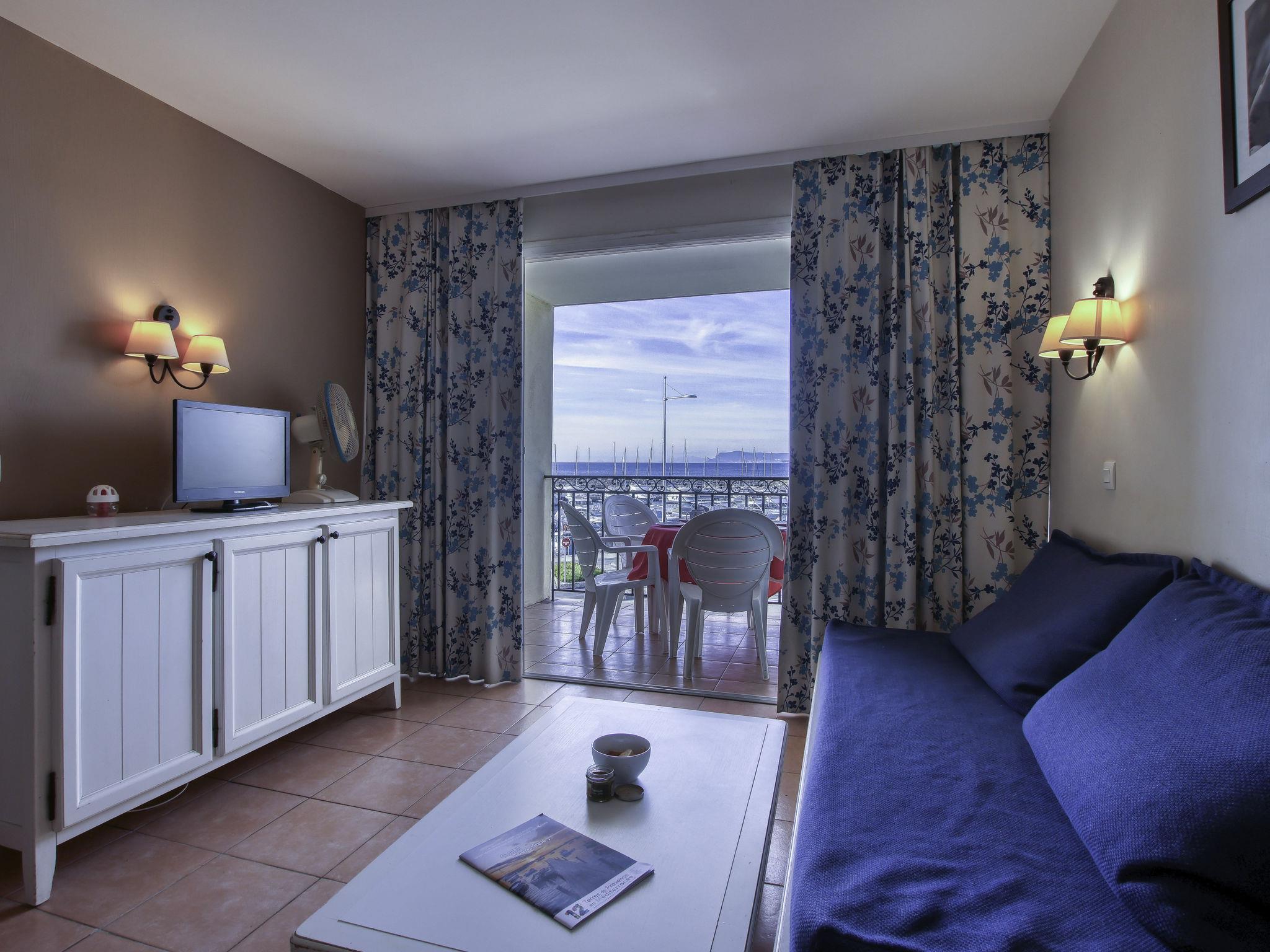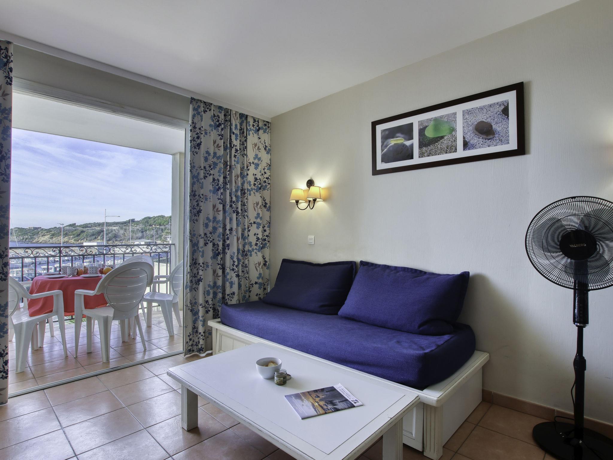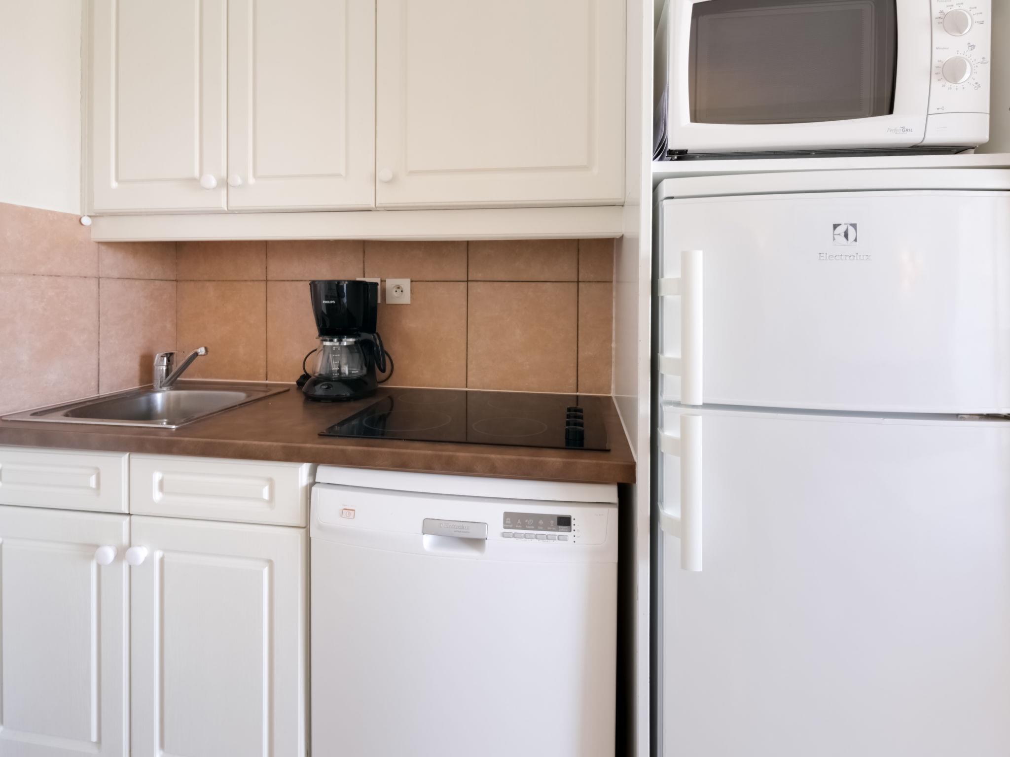 3-room apartment 38 m2 on 1st floor. Practical and comfortable furnishings: living/dining room with 1 bed (80 cm, length 190 cm), TV (flat screen). Exit to the terrace. Sleeping alcove with 1 x 2 bunk beds (80 cm, length 190 cm). 1 room with 1 french bed (140 cm, length 190 cm). Kitchenette (dishwasher, 4 ceramic glass hob hotplates, toaster, kettle, microwave, freezer, electric coffee machine). Bathroom, shower/WC. Electric heating. Terrace 5 m2, roofed, north-west facing position. Terrace furniture. Beautiful view of the sea. Facilities: Internet (WiFi, extra). Parking space n 471 (Niveau 1) (roofed), height 190 cm, width 232 cm. Please note: apartment street side. Maximum 1 pet/ dog allowed. TV only FR. Smoke alarm. The accommodation is 30 meters only from the road and a red light. Instead of an enclosed bedroom, some sleeping areas are located in an open-plan area (gallery, alcove, etc.).