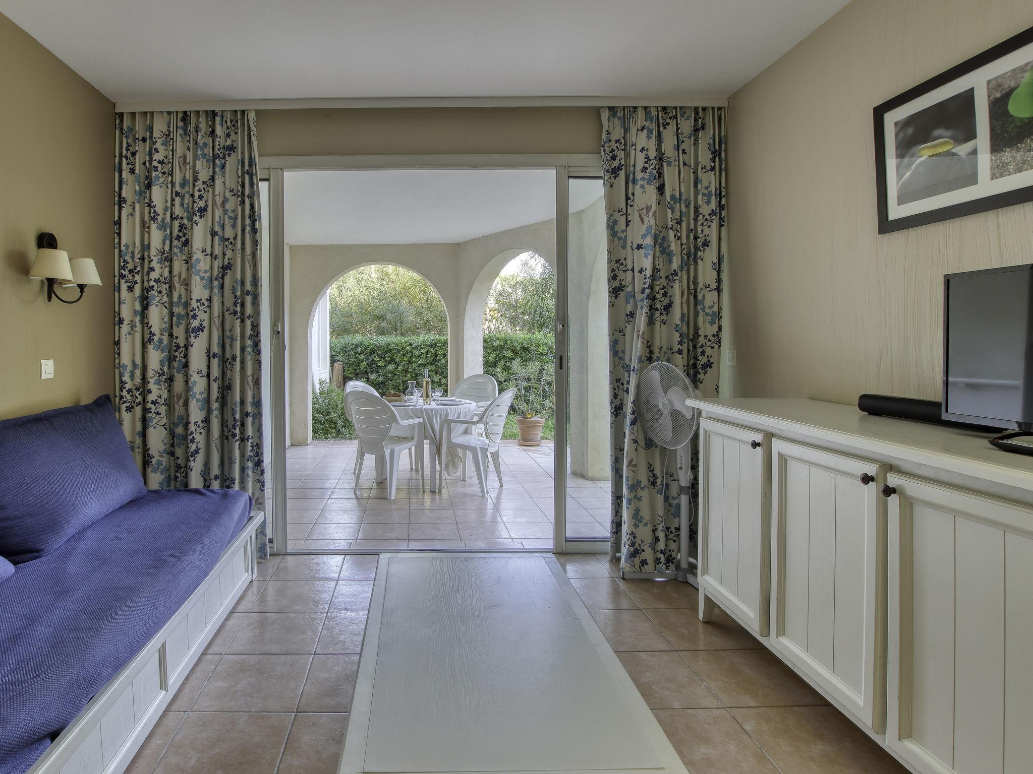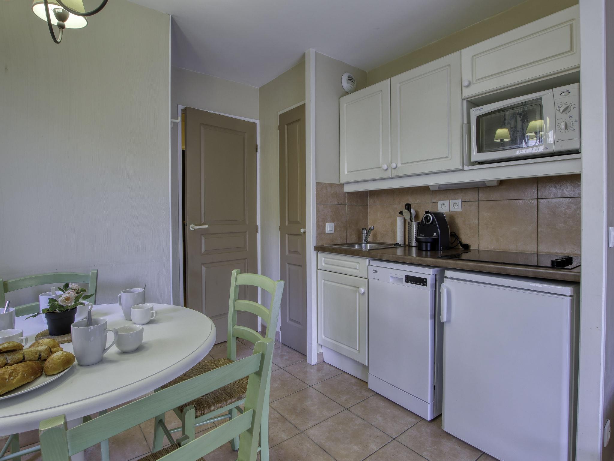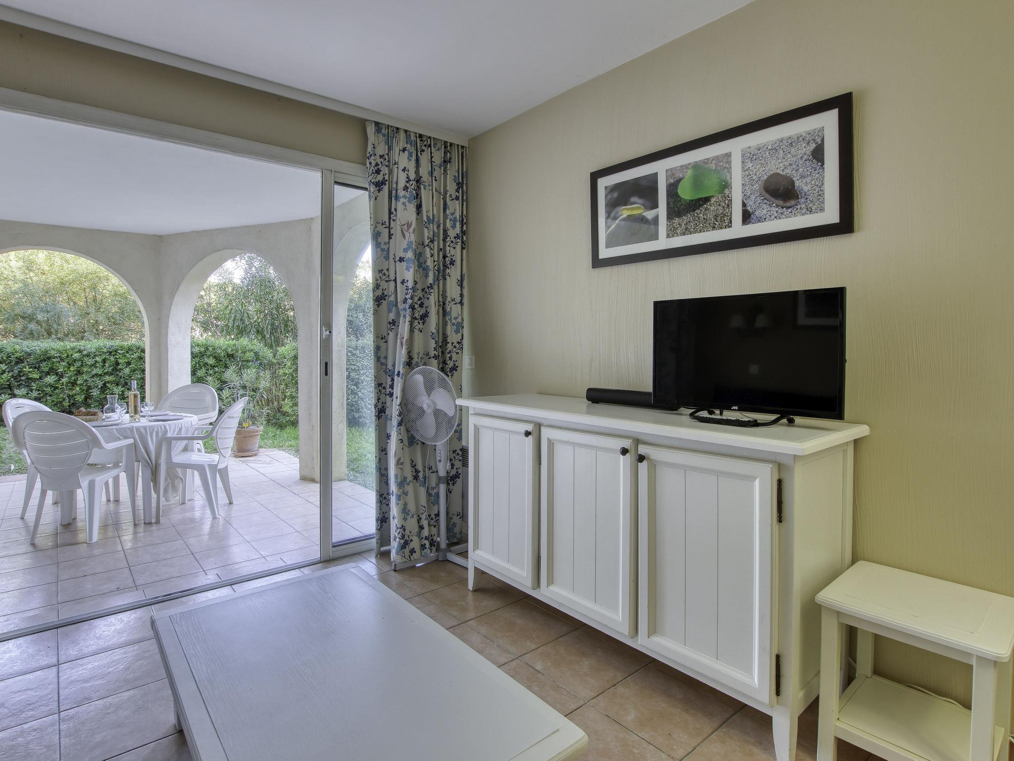 2-room apartment 32 m2, on the ground floor. Beautiful furnishings: living/dining room with 1 bed (80 cm, length 190 cm), 1 sleeping facility (70 cm, length 190 cm), TV (flat screen), fan. Exit to the terrace. 1 room with 1 french bed (1 x 140 cm, length 190 cm), TV (flat screen). Kitchenette (dishwasher, 4 ceramic glass hob hotplates, toaster, kettle, microwave, electric coffee machine). Bathroom, sep. WC. Electric heating. Terrace 20 m2, roofed, north-east facing position. Terrace furniture. View of the garden. Parking space n 574 - Niveau P2 (roofed), height 190 cm, width 240 cm. Please note: TV only FR. Smoke alarm. Please note: the terrace is not fenced and overlooks the green spaces of the condominium. Offer by a private individual according to Art. 155, IV of CGI.