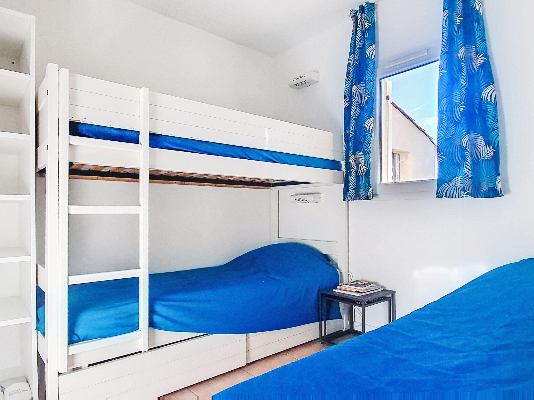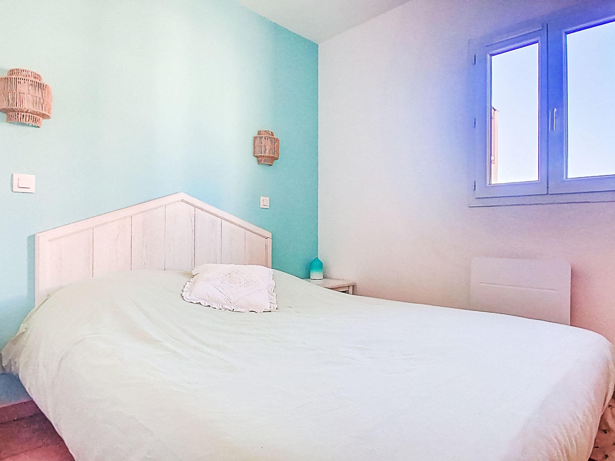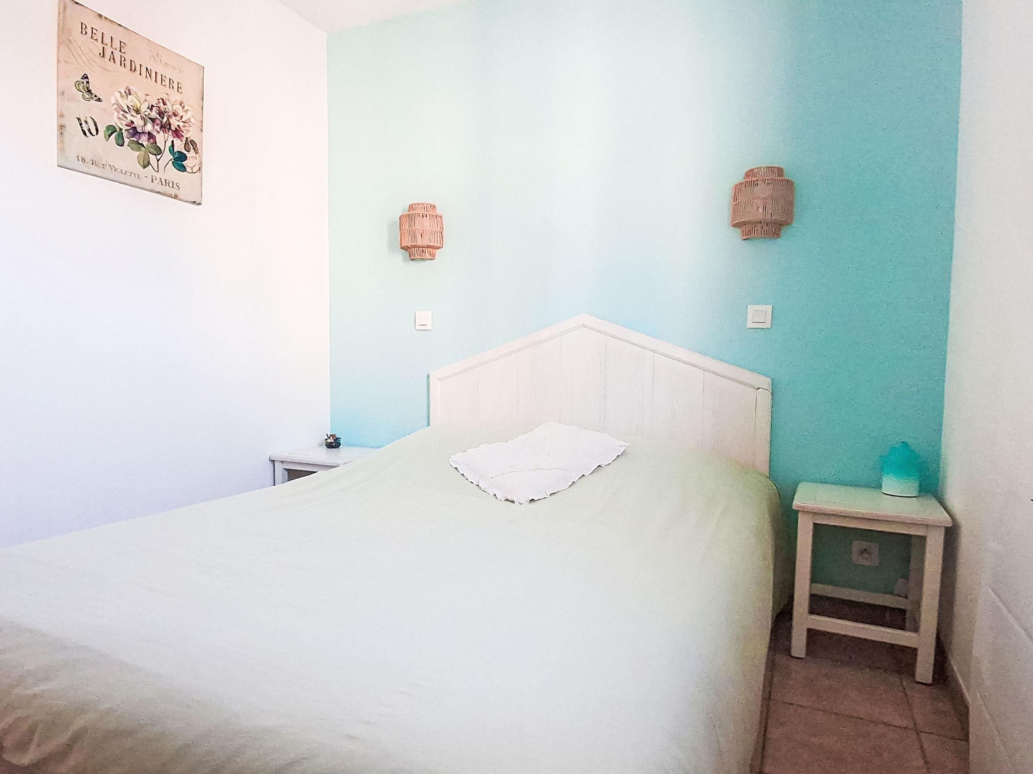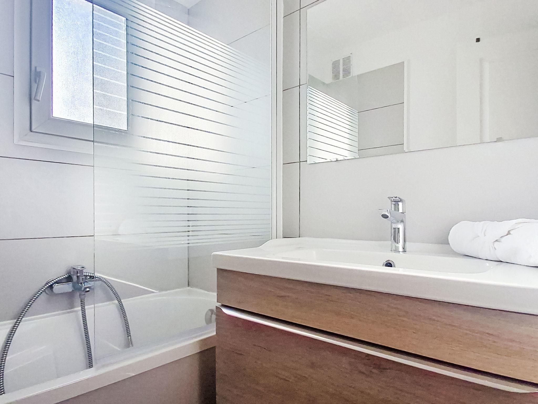 3-room apartment 38 m2 on 2nd floor. Practical and beautiful furnishings: living/dining room with 1 bed (80 cm, length 190 cm), TV (flat screen). Exit to the loggia. 1 small room 7 m2 with 1 x 2 bunk beds (80 cm, length 190 cm). 1 room with 1 french bed (140 cm, length 190 cm). Kitchenette (dishwasher, 4 ceramic glass hob hotplates, toaster, kettle, microwave, electric coffee machine, Capsules for coffee machine (Nespresso) extra). Bathroom, sep. WC. Electric heating. Terrace 6 m2, roofed, west facing position. Terrace furniture. View of the sea. Facilities: washing machine. Internet (WiFi, free). Parking space n 503 (Niveau 2) (roofed), height 190 cm, width 230 cm. Please note: maximum 1 pet/ dog allowed. TV only FR. Smoke alarm, no lift. Offer by a private individual according to Art. 155, IV of CGI.