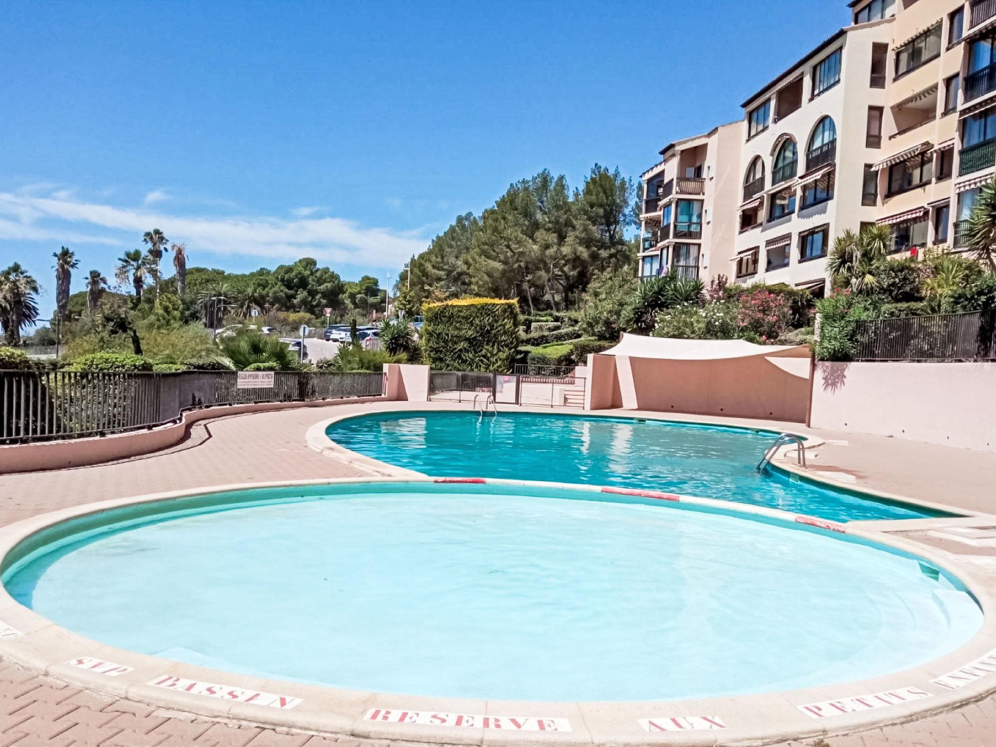 Domaine de la Coudoulière: The Jardins d'Azur swimming pool is free and accessible only to residents of this complex. It is closed every Thursday in July and August. Leisure facilities are available within the 35-hectare private, wooded estate: restaurant, entertainment (from July 1st to August 31st, photos required). The price for the Tennis + Swimming Pool access card is approximately €30 per person per week (daily rate: €5.20 for adults, €3.20 for children). Please note: beach distances are walking distances. Residence "Jardin D'Azur", 4 storeys. 3 km from the centre, 400 m from the sea, 400 m from the beach. For shared use: garden (fenced), swimming pool (8 x 18 m, seasonal availability: 15.May. - 15.Sep. pool opening hours: 09:00-20:00). Public parking extra. Shop 1.5 km, restaurant 300 m, sandy beach "La coudoulière" 400 m. Marina 400 m, golf course (18 hole) 13 km. Hiking paths: Sainte Beaume, Sainte Victoire, Parcs des Calanques, Port-Cros, Porquerolles. Please note: the keys‘ handover takes place by the agency Interhome in Six fours les plages, 3 km. Main road close by.