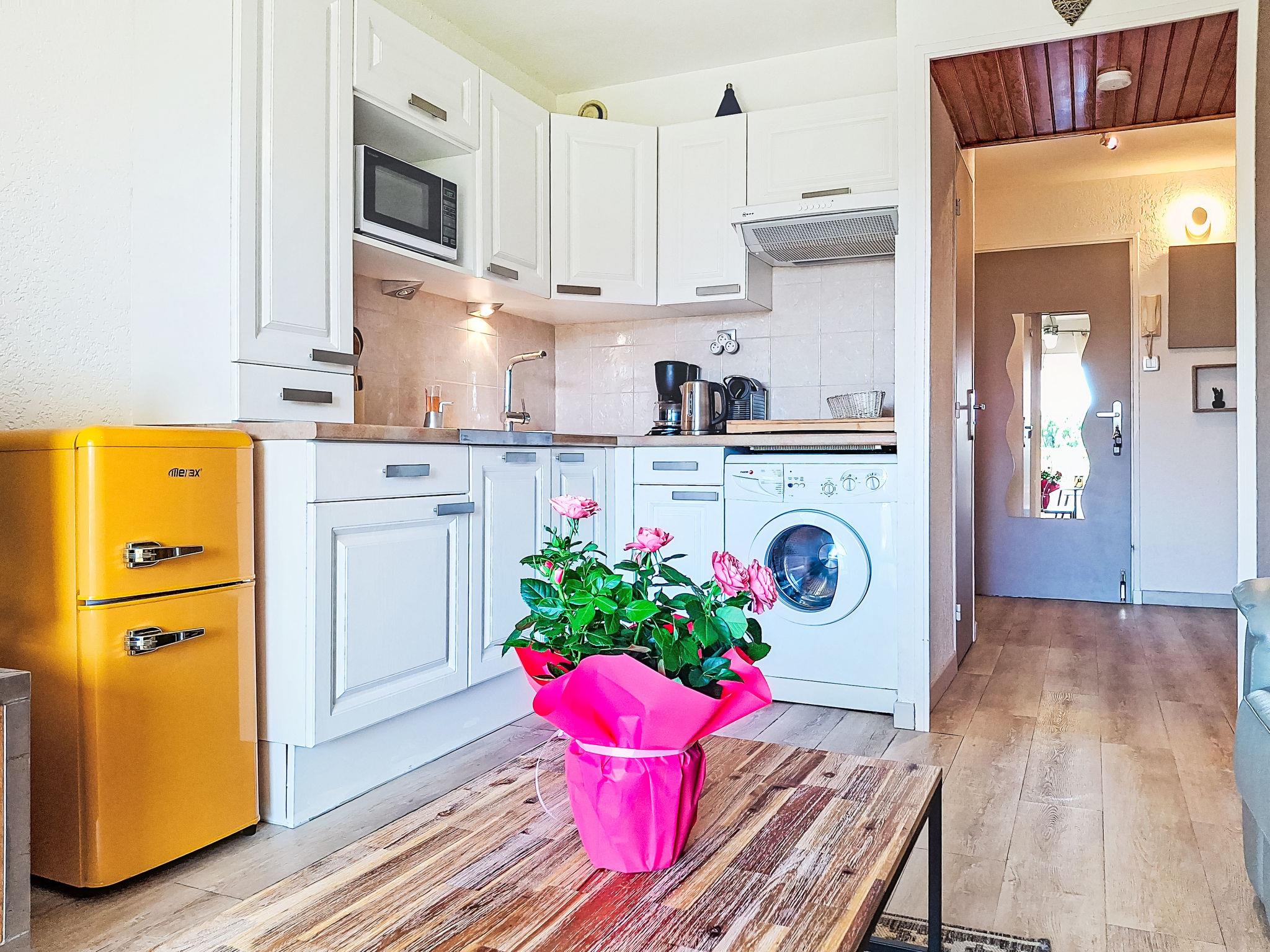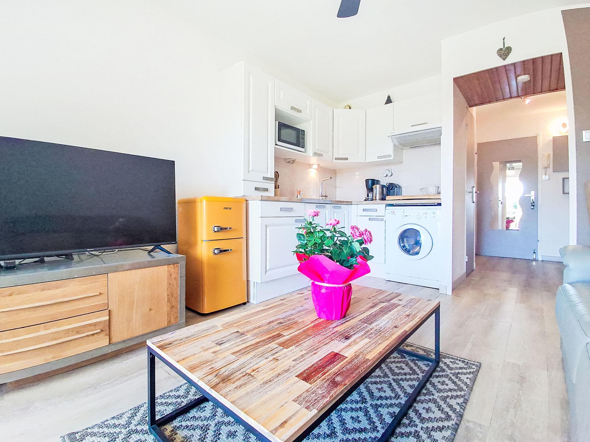 1-room apartment 28 m2 on 1st floor. Bright, comfortable furnishings: living/dining room with 1 double sofabed (140 cm, length 190 cm), dining table and TV (flat screen), fan. Kitchenette (dishwasher, 1 induction hot plates, 3 gas rings, toaster, kettle, microwave, freezer, electric coffee machine, Capsules for coffee machine (NESPRESSO) extra). Bathroom, sep. WC. Electric heating. West facing position. Facilities: washing machine. Internet (WiFi, extra). Please note: non-smokers only. TV only FR. Smoke alarm. Offer by a private individual according to Art. 155, IV of CGI.
