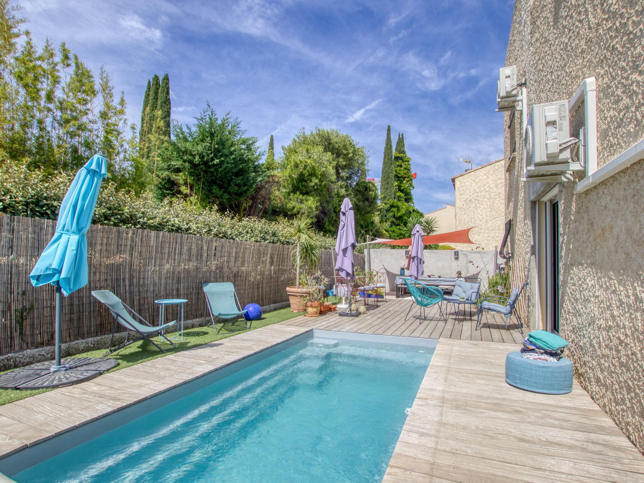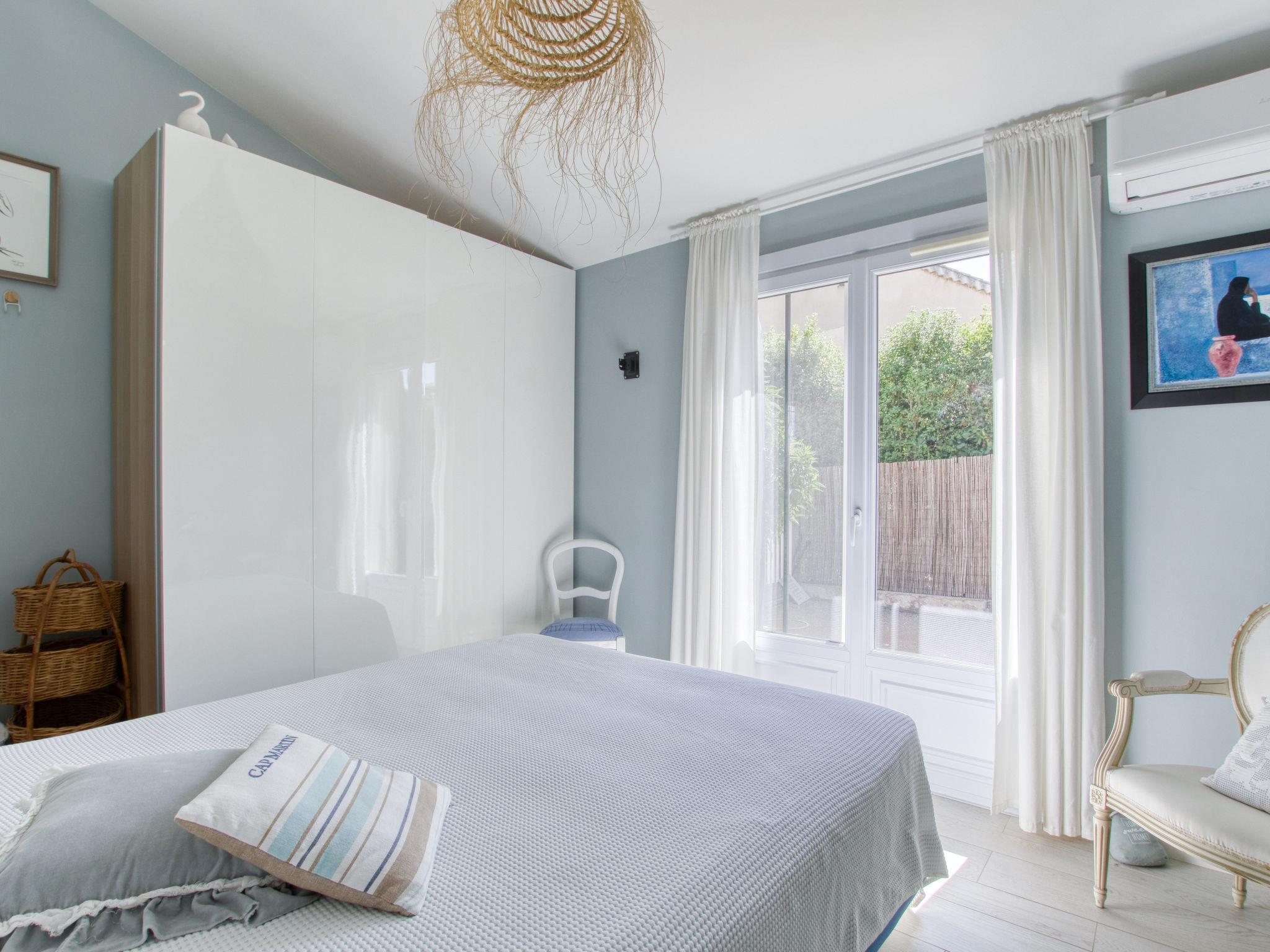 4-room house 100 m2 on 2 levels. Living/dining room with TV (flat screen), air conditioning. Exit to the garden, to the terrace, to the swimming pool. 1 room with 1 french bed (160 cm, length 200 cm), shower and air conditioning. Exit to the garden. 1 room with 1 french bed (140 cm, length 190 cm). Open kitchen (4 hot plates, oven, dishwasher, kettle, microwave, freezer, electric coffee machine, Capsules for coffee machine (Nespresso) extra). Sep. WC. Forced-air heating. Upper floor: (spiral staircase), 1 room with 1 bed (90 cm, length 190 cm), separate WC and shower. South facing position and, east facing position. Terrace furniture, electric barbecue. Facilities: washing machine, dryer, mosquito net. Internet (WiFi, free). Parking (fenced), width 240 cm. Please note: parking space for small car only. Maximum 1 pet/ dog allowed. Smoke alarm. Small car parking. Offer by a private individual according to Art. 155, IV of CGI.