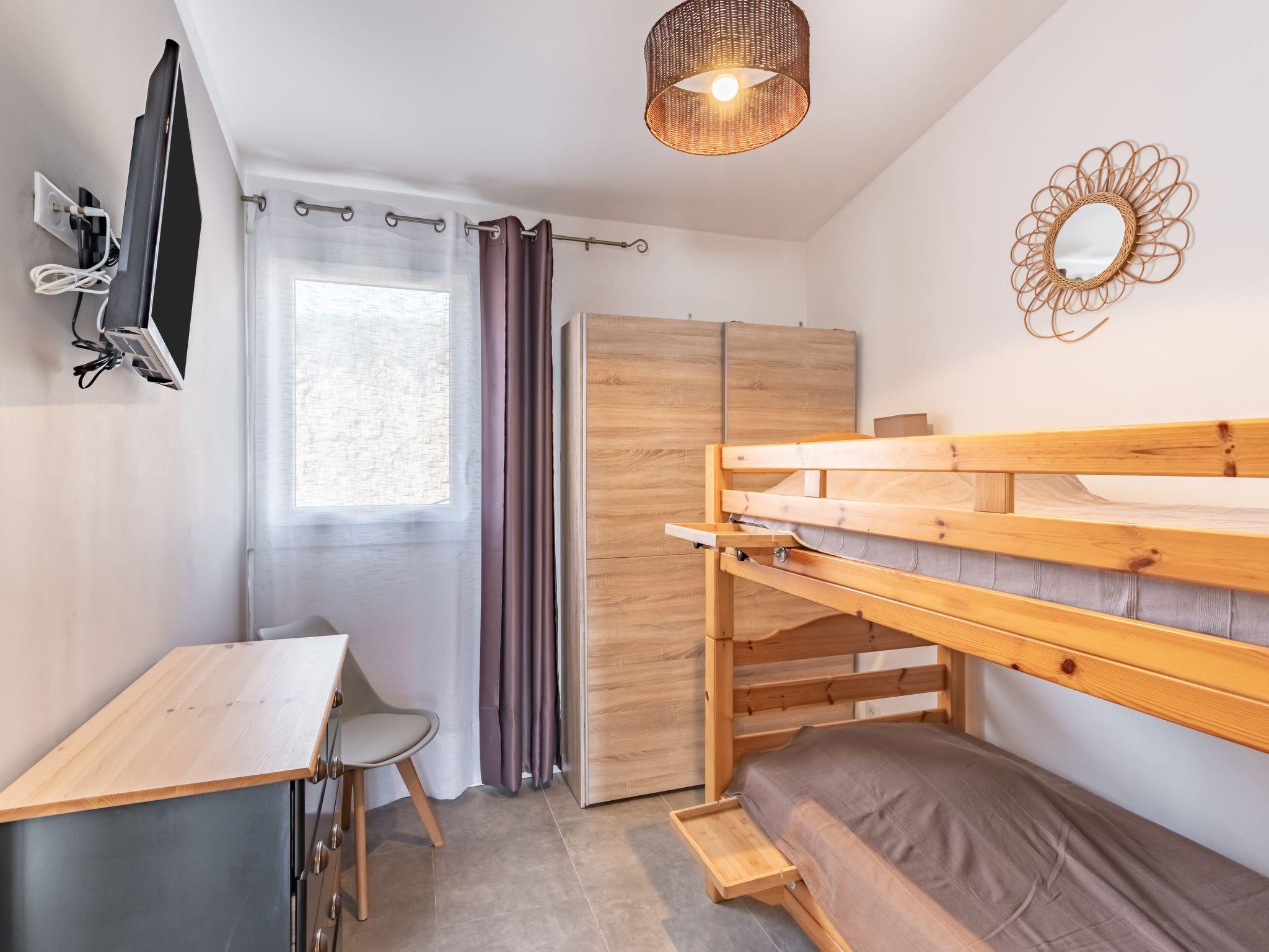 "Mustella", 3-room terraced house 28 m2. Practical and beautiful furnishings: living room. 1 room with 1 x 2 bunk beds, 1 french bed (140 cm, length 190 cm). Kitchen-/living room (dishwasher, 2 induction hot plates, toaster, kettle, microwave, freezer, electric coffee machine, Capsules for coffee machine (nespresso) extra) with dining table, dining table and satellite TV. Exit to the terrace. Shower/WC. Heating, air-conditioning. Terrace, patio. Terrace furniture. Beautiful view of the sea. Facilities: Internet (WiFi, free). Please note: non-smokers only. Smoke alarm. No possibility of installing a cot. Offer by a commercial proprietor according to Art. 155, IV, CGI